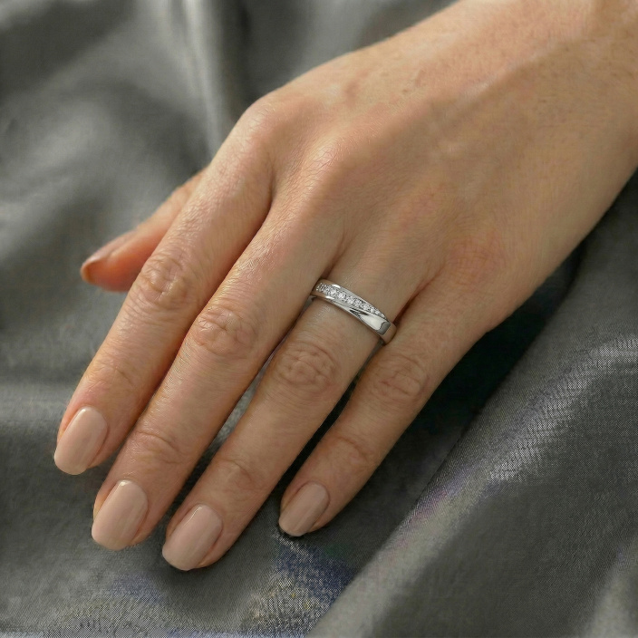 Женское обручальное кольцо из белого золота с бриллиантами MOBIUS MONO