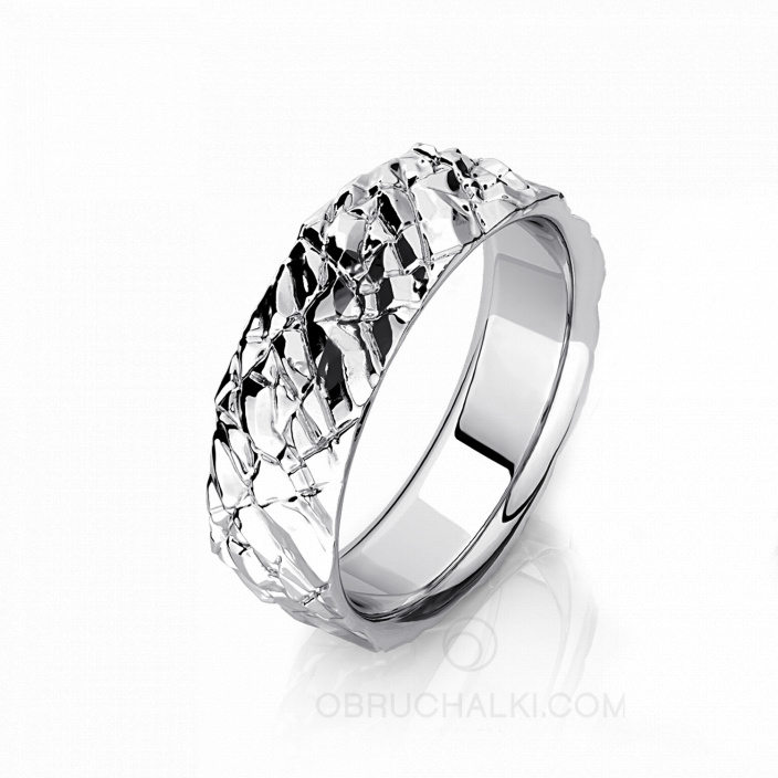 Обручальное кольцо мужское из белого золота с фактурой мятой фольги FOIL COMBO