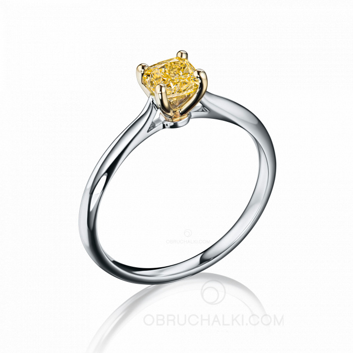 Помолвочное кольцо для невесты с желтым бриллиантом огранки кушон PROMISE CUSHION YELLOW