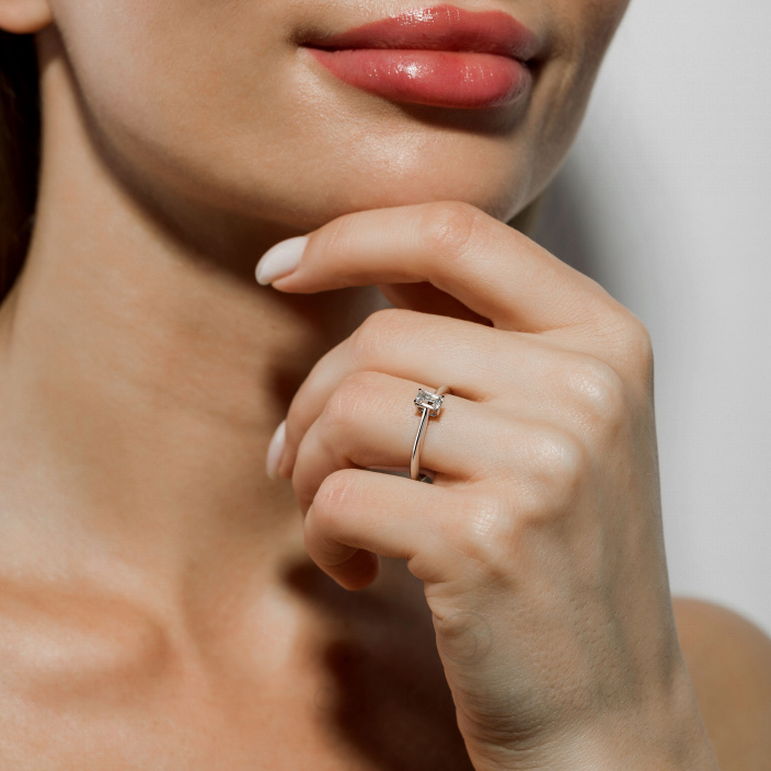 Помолвочное кольцо с бриллиантом изумрудной огранки PROMISE EMERALD