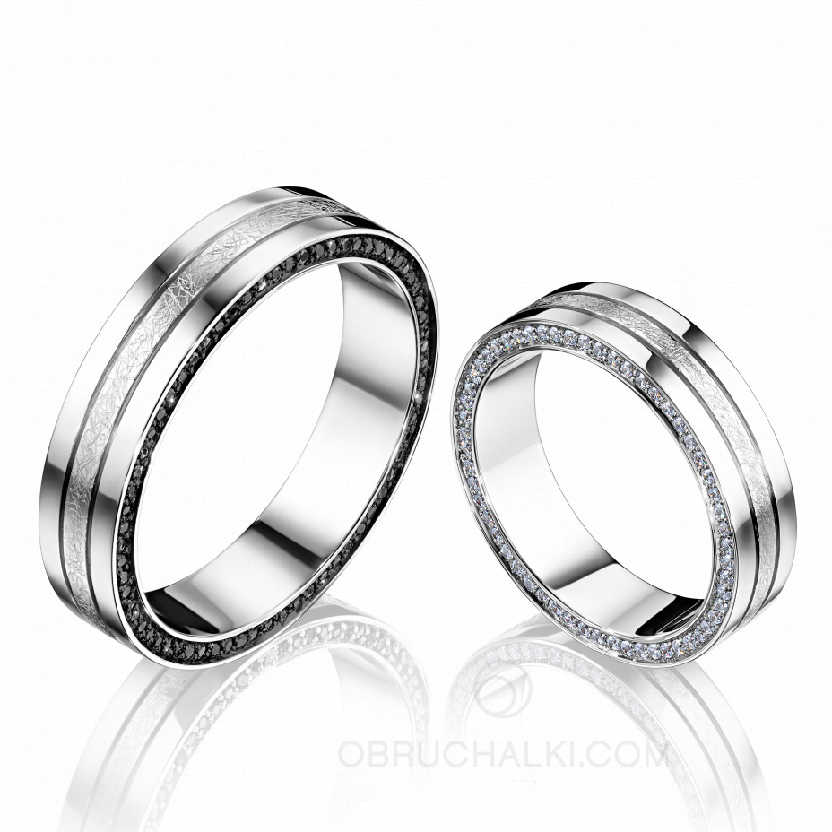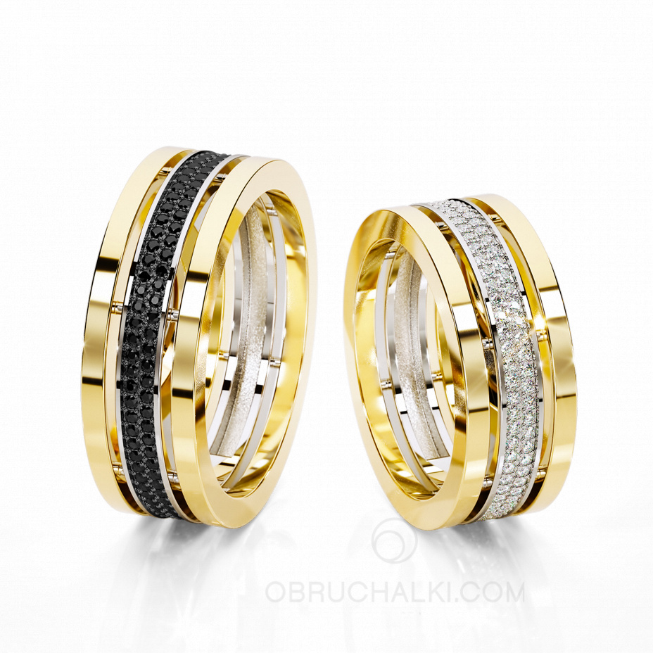 Парные обручальные кольца с черными и белыми бриллиантами GORGEOUS COMBO