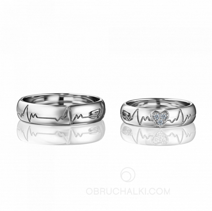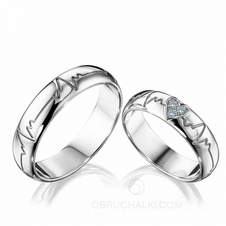 Парные обручальные кольца из белого золота и бриллиантами HEARTBEAT DIAMOND