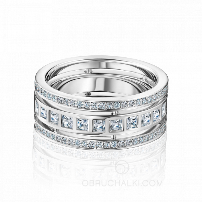 Красивое обручальное кольцо-браслет комбинированное с бриллиантами