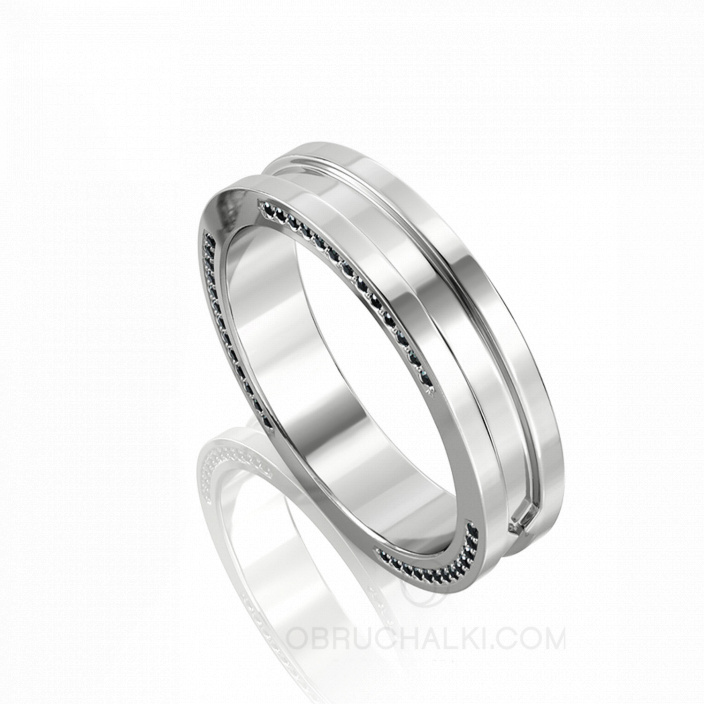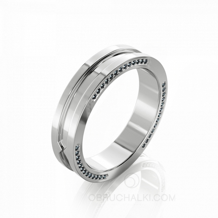 Мужское обручальное кольцо с черными бриллиантами MYSTERY WEDDING RINGS