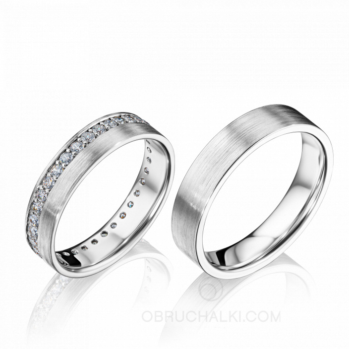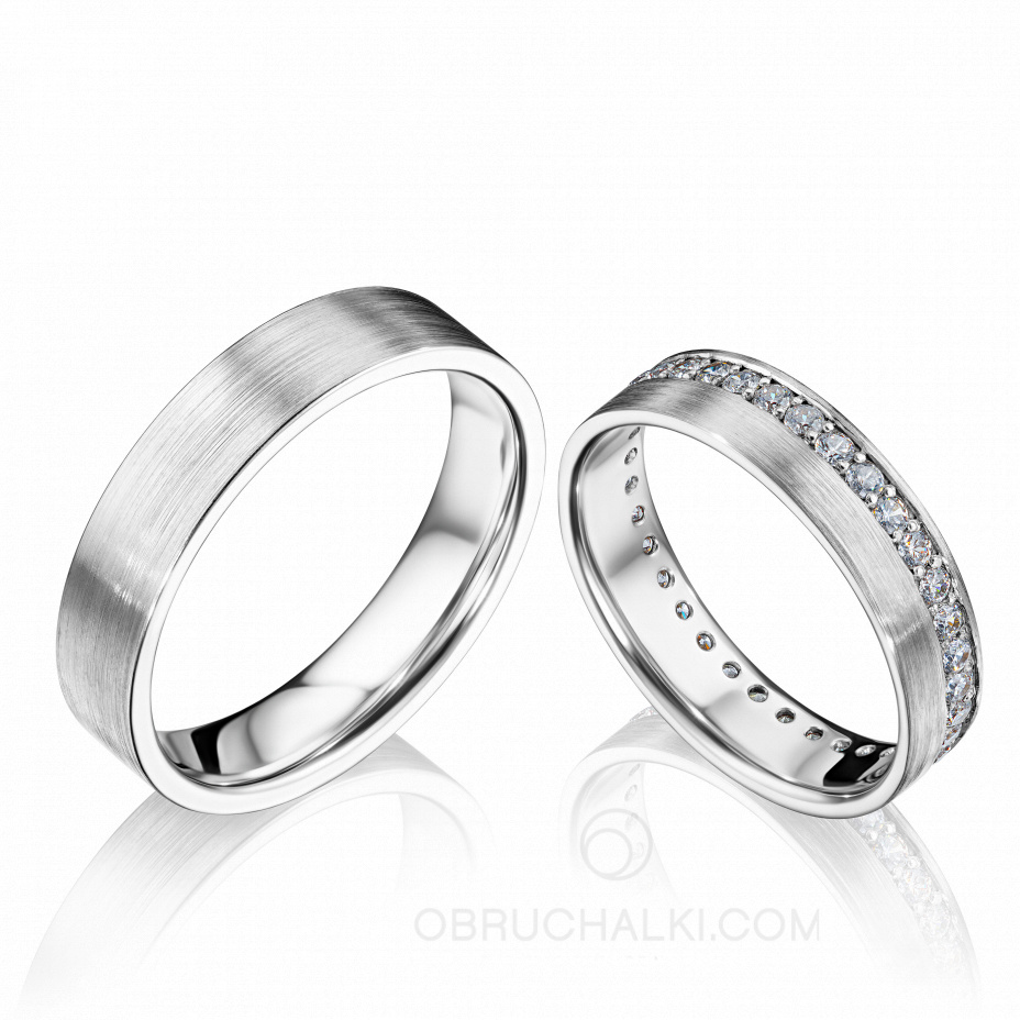 Парные обручальные кольца с бриллиантовой дорожкой