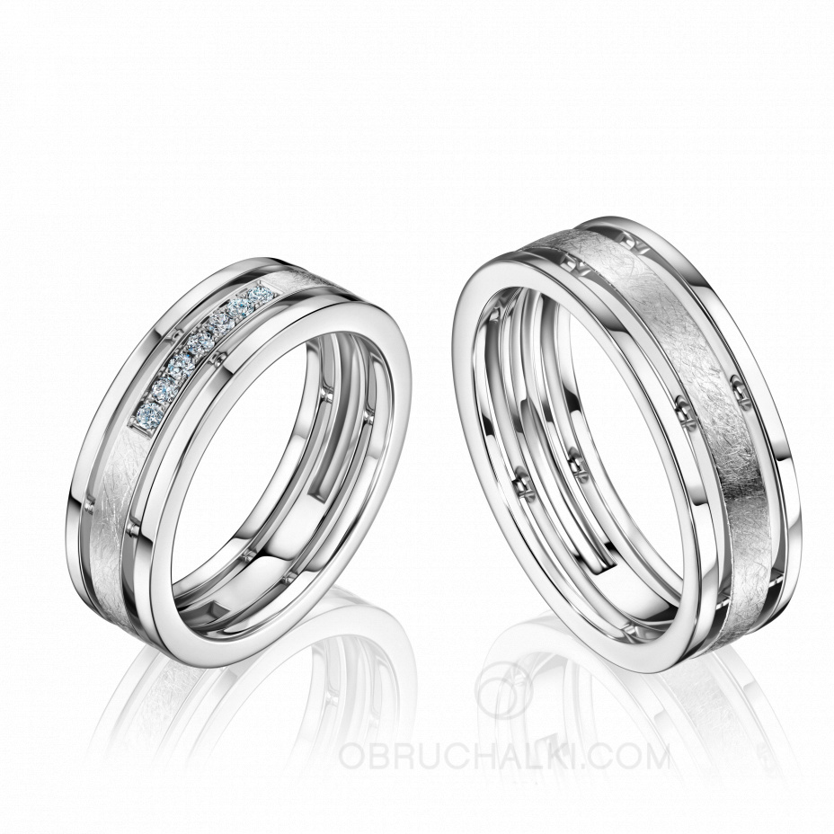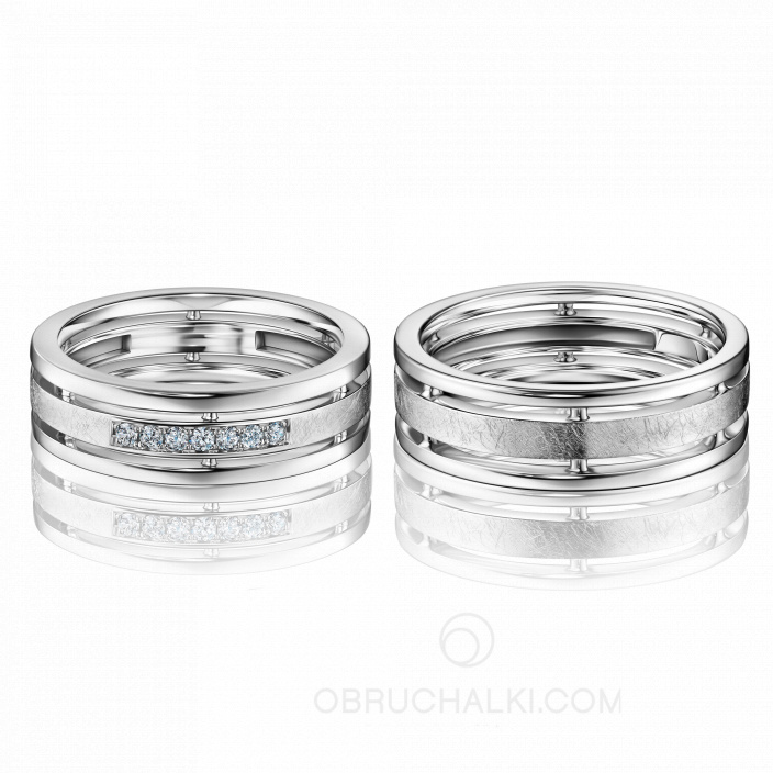 Обручальные кольца с фактурной поверхностью и бриллиантами