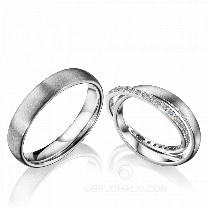 Обручальные парные кольца из платины с дорожкой из бриллиантов TANDEM
