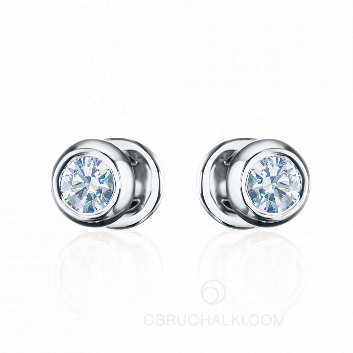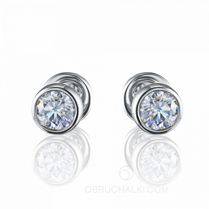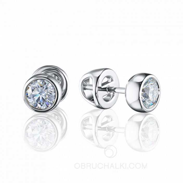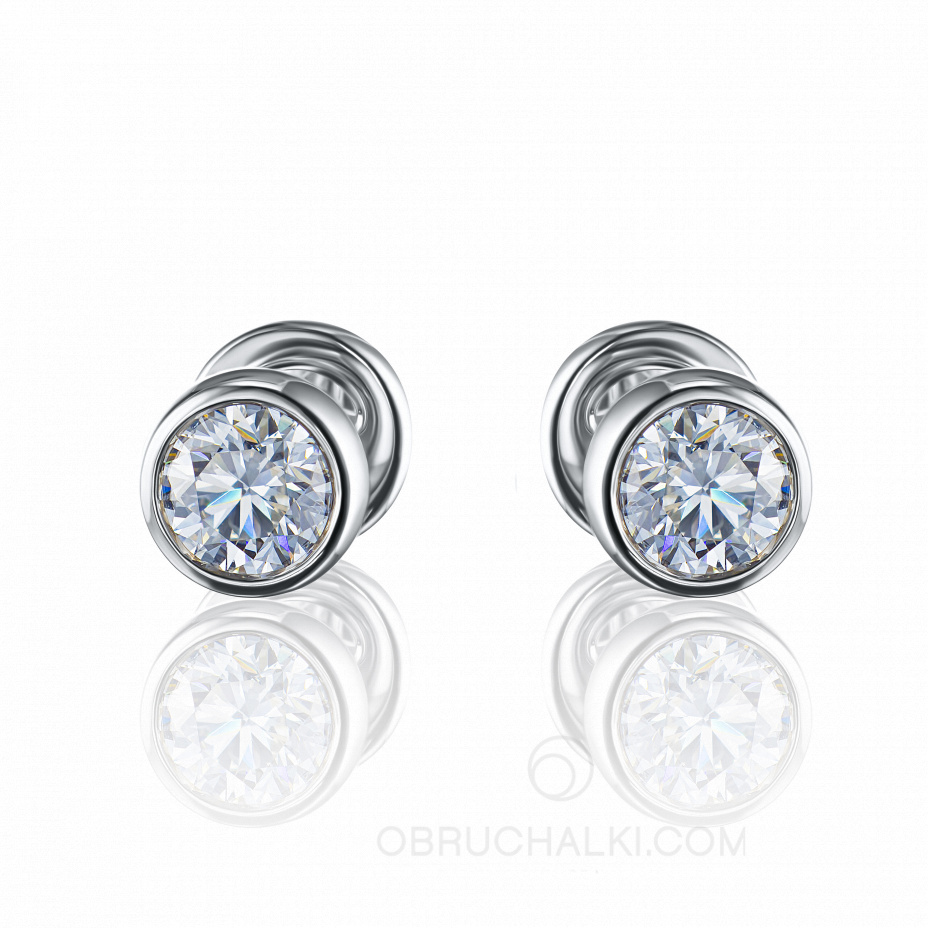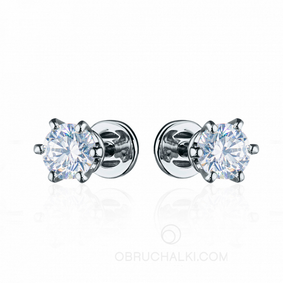 Классические элегантные серьги пусеты из белого золота с крупными бриллиантами PUSET DIAMONDS