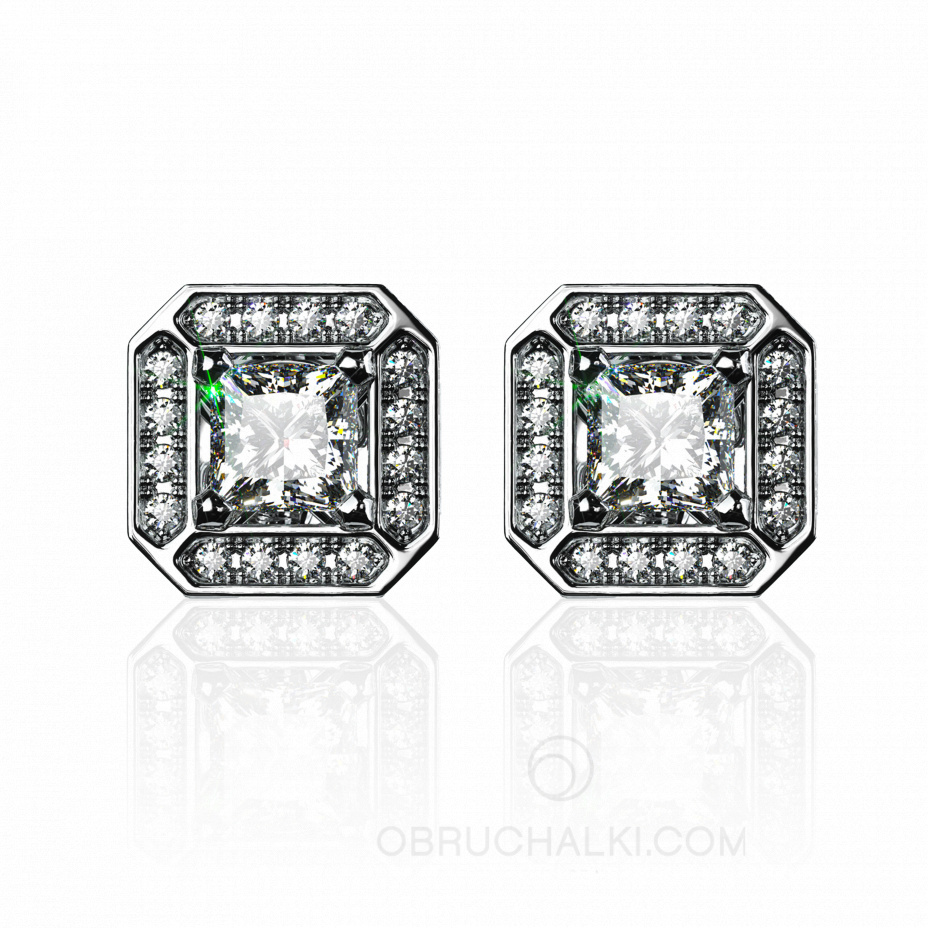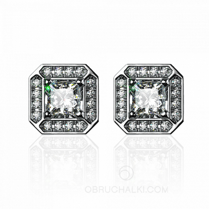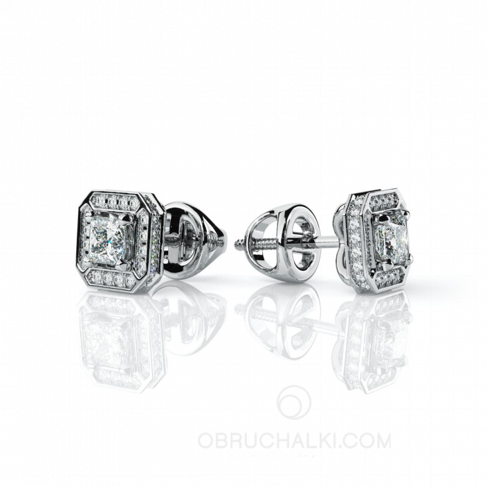 Серьги-пусеты из белого золота с бриллиантами огранки вытянутый кушон