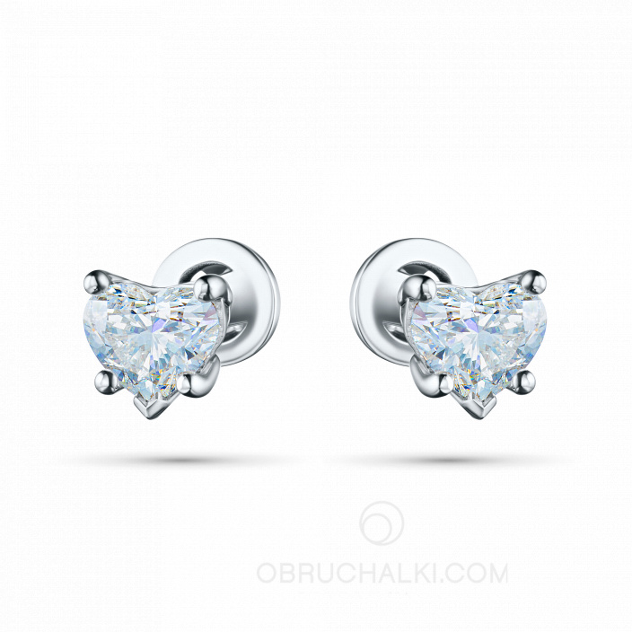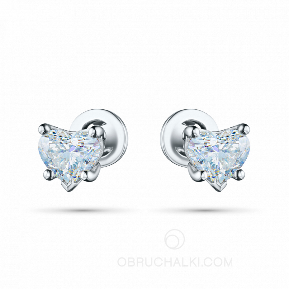 Серьги пусеты с бриллиантами в виде сердца LOVE ARROW