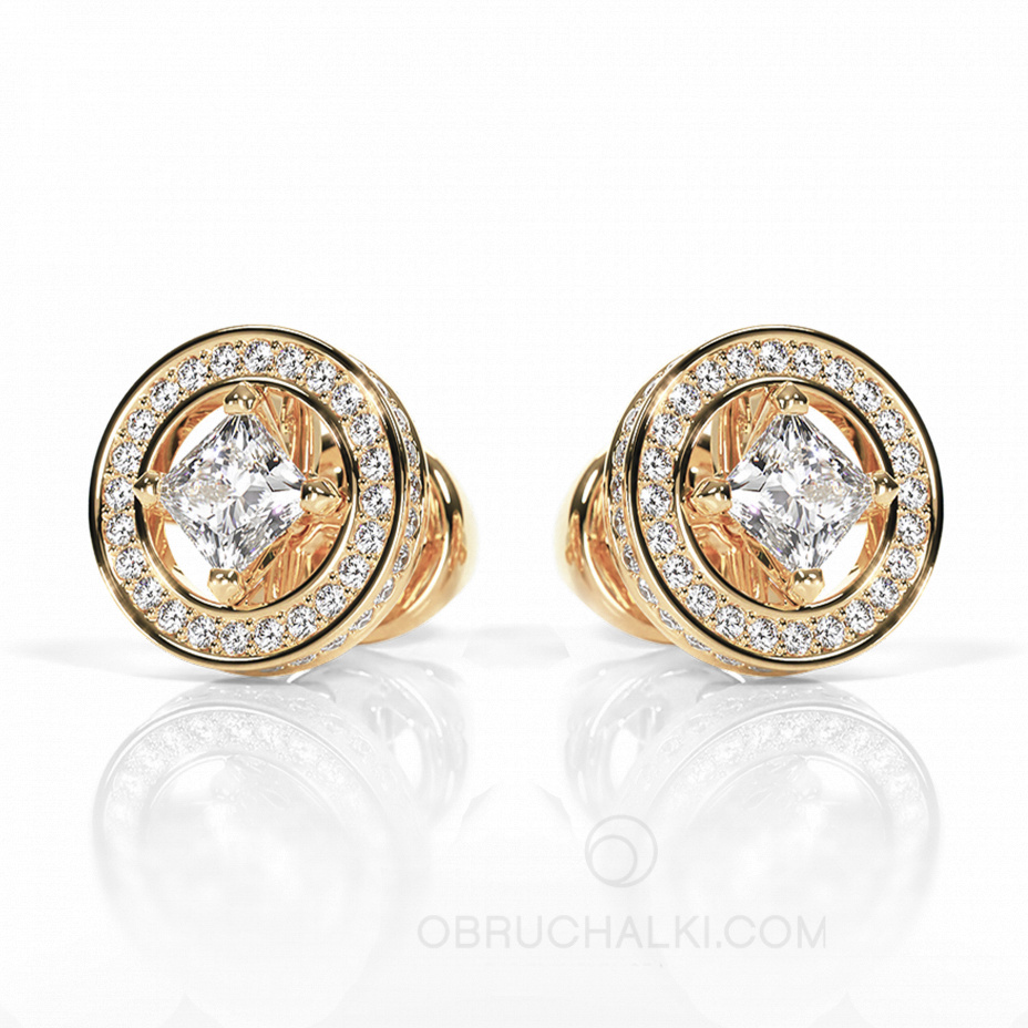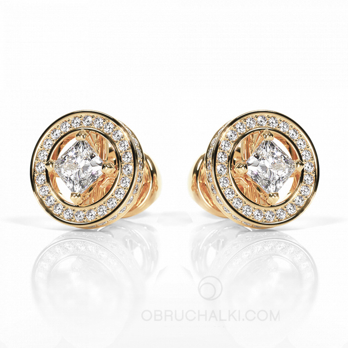 Пусеты-трансформеры из золота с бриллиантами