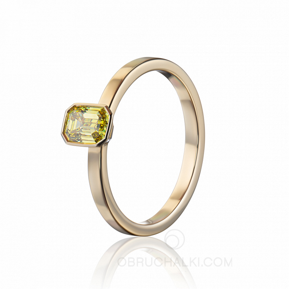 кольцо помолвочное кольцо из желтого золота с желтым бриллиантом огранки эмеральд FAMILY RELIC
