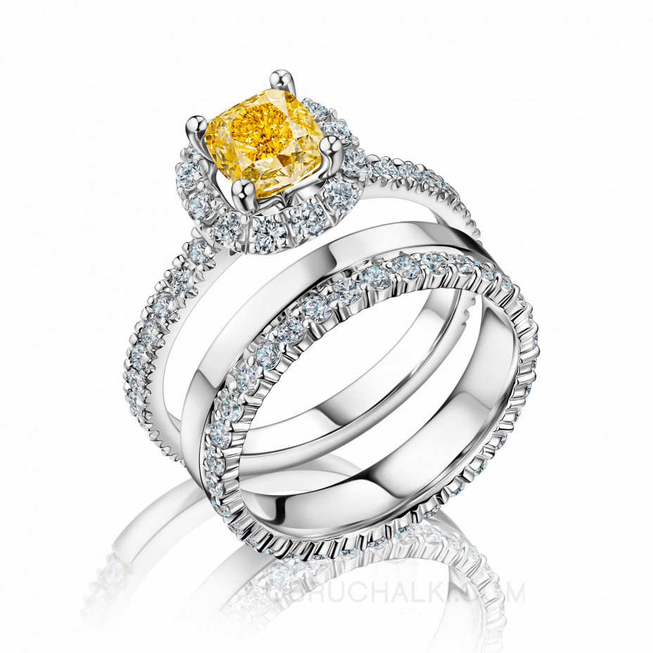 Помолвочное кольцо с желтым бриллиантом и россыпью камней
