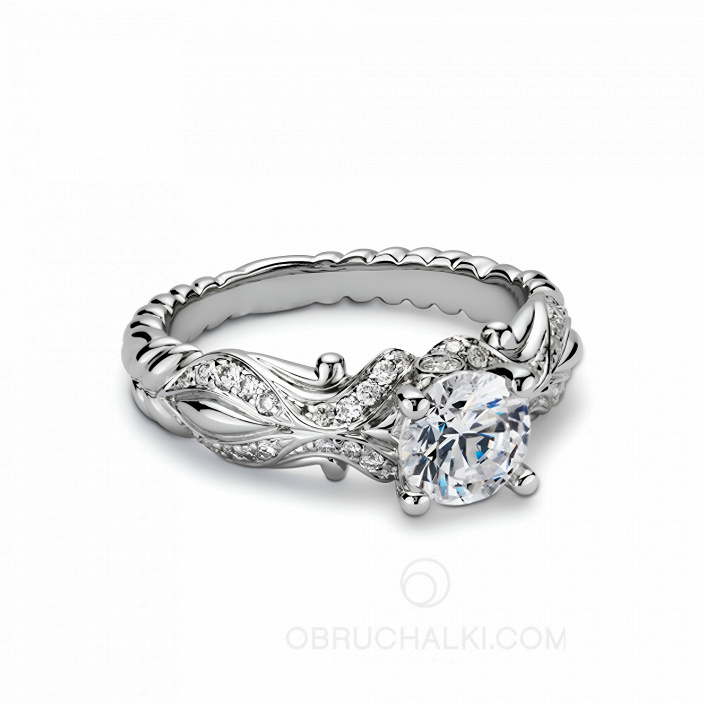 Кольцо для помолвки GRAPE WINE с природным орнаментом и бриллиантами