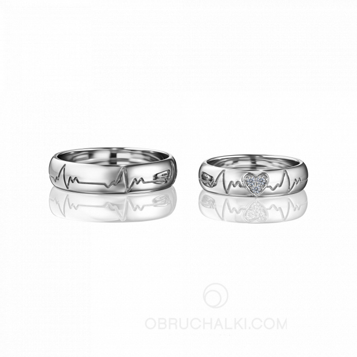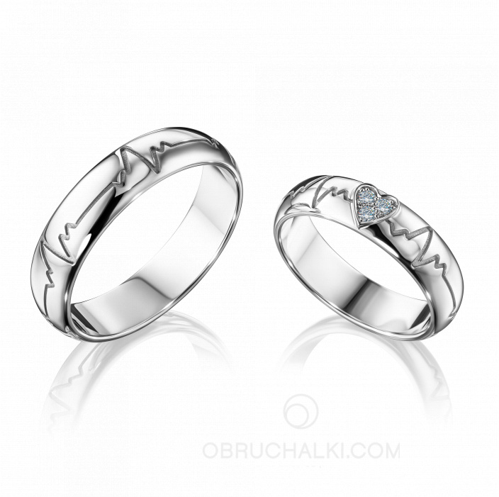 Парные обручальные кольца из белого золота PULSE OF LOVE
