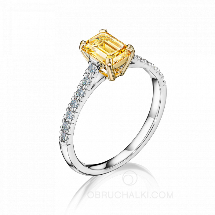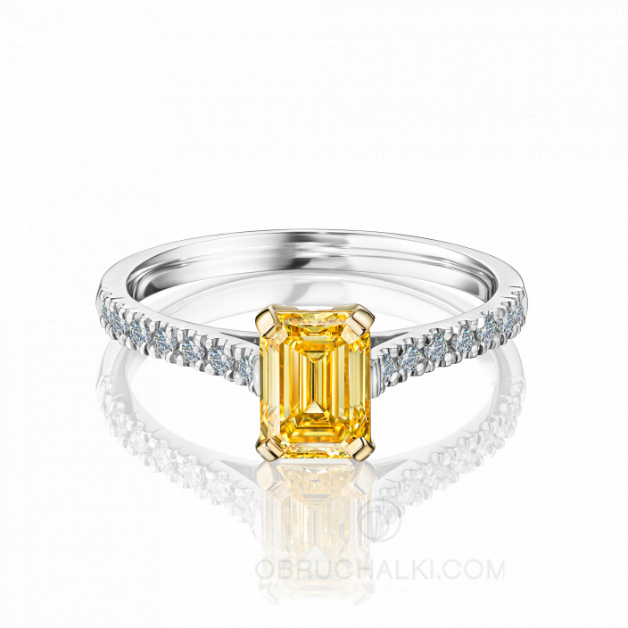 Кольцо на помолвку с желтым бриллиантом огранки эмеральд TIMELESS SUN