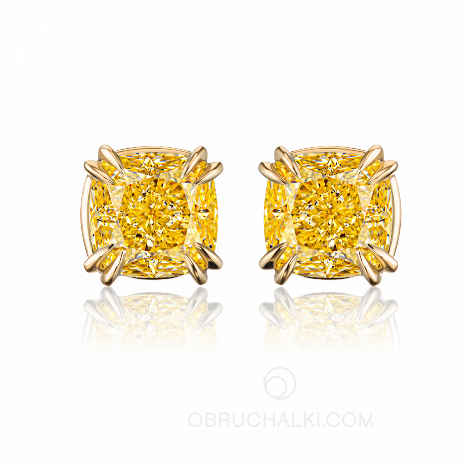 Пусеты из желтого золота с желтым бриллиантом огранки кушон CUSHION SUNSHINE