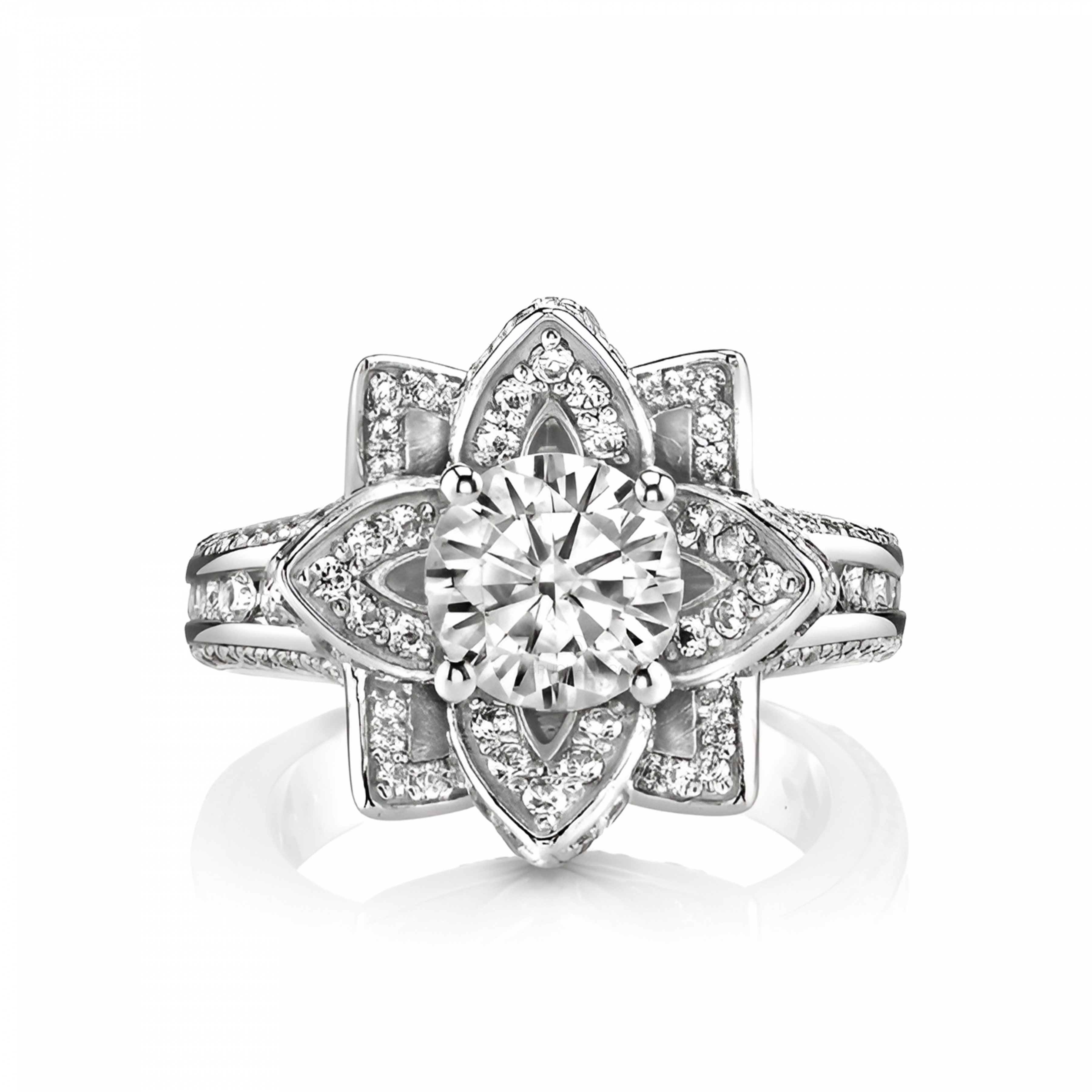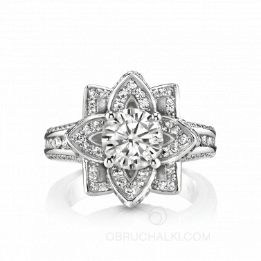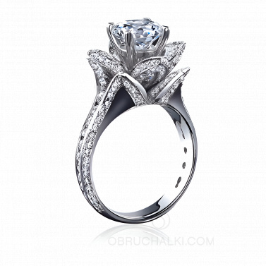 Женское кольцо в виде цветка с большим бриллиантом WHITE FLOWER