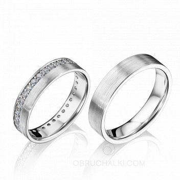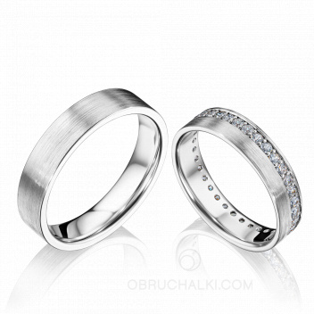 Матовые обручальные кольца с бриллиантовой дорожкой