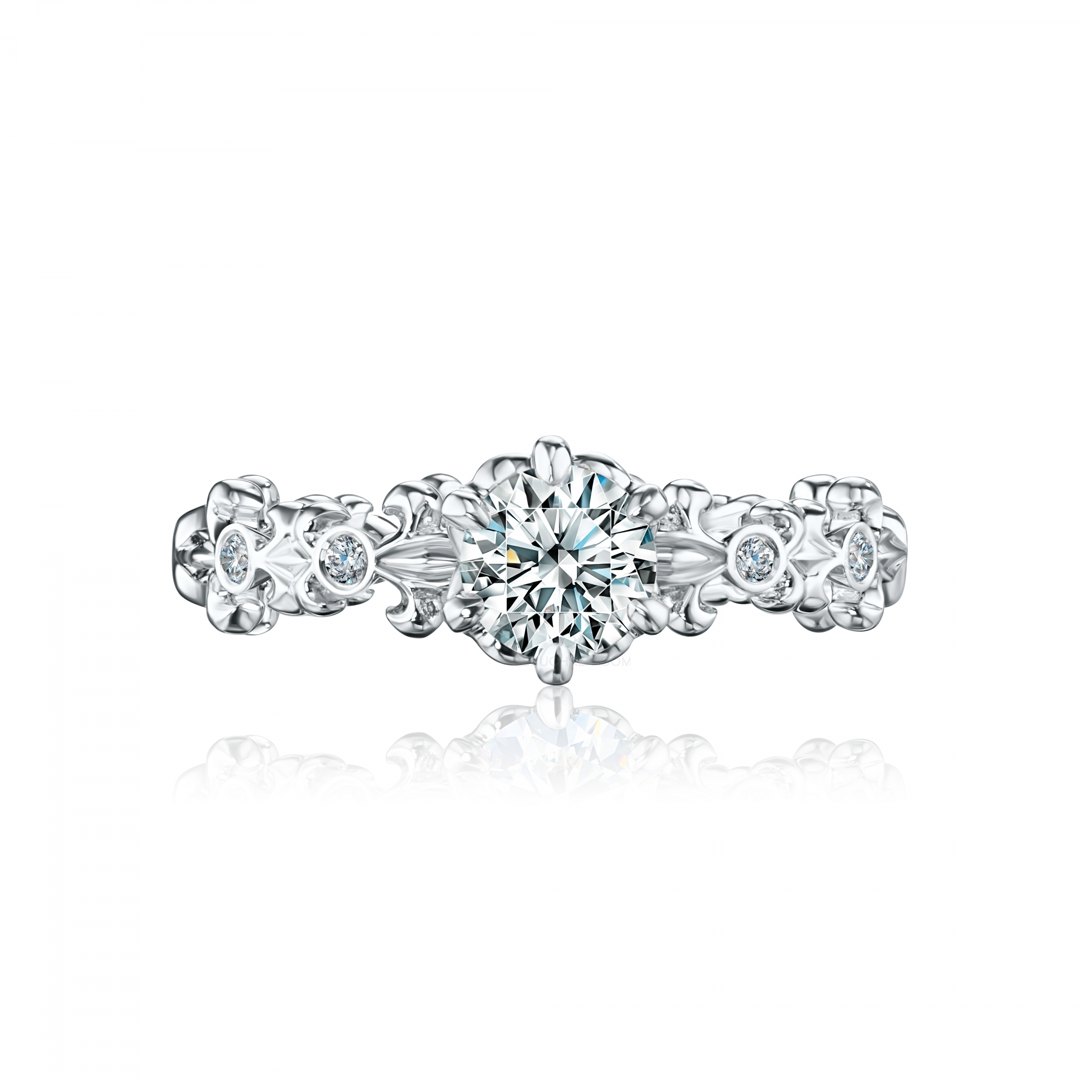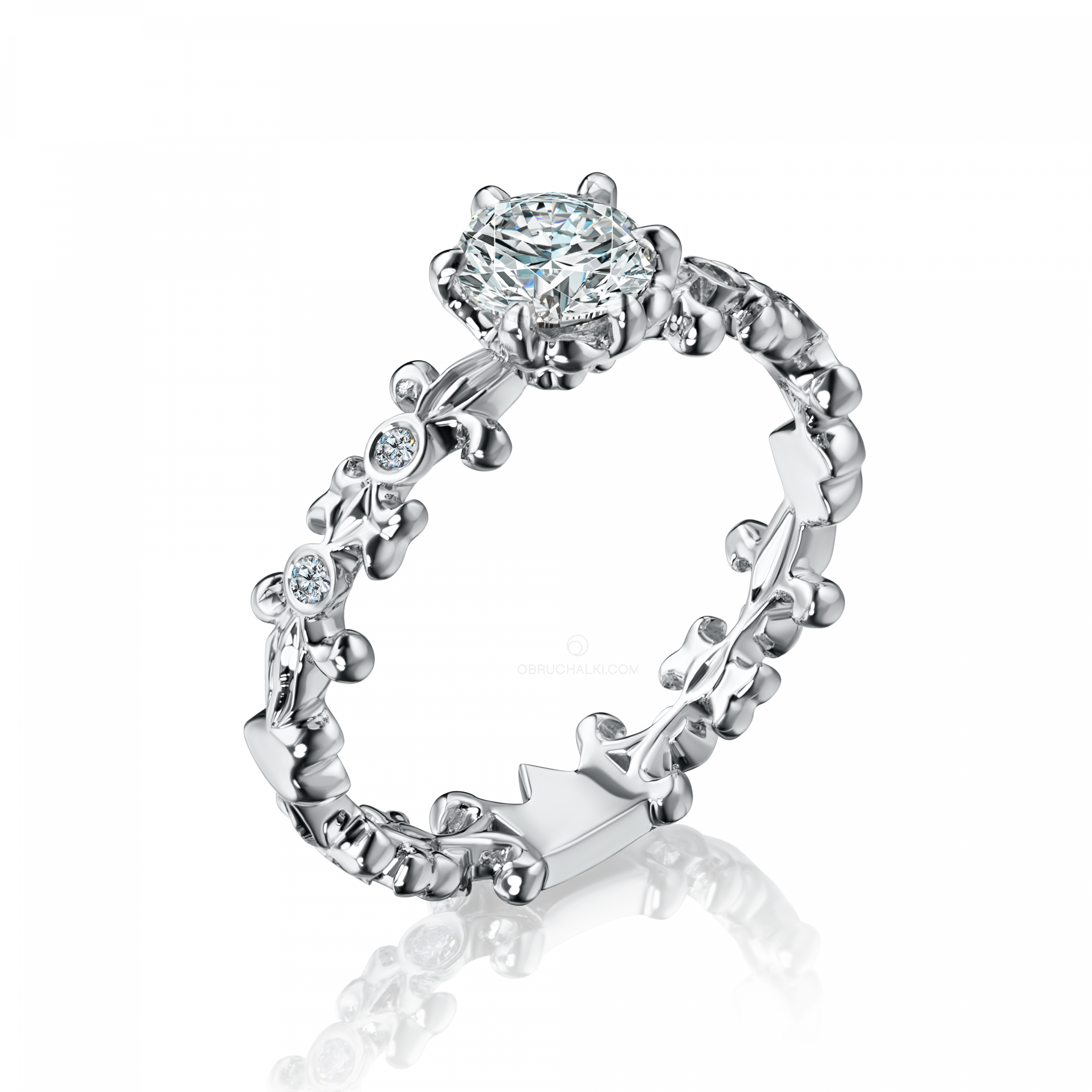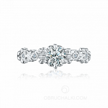 Ажурное кольцо для девушки на помолвку с бриллиантом FLEUR DE LIS