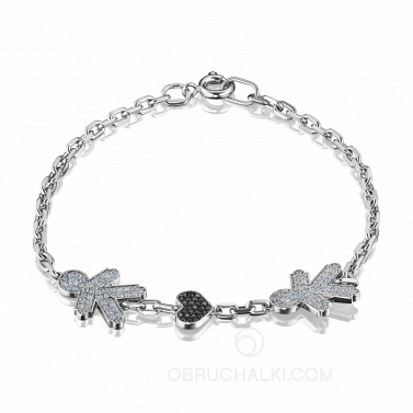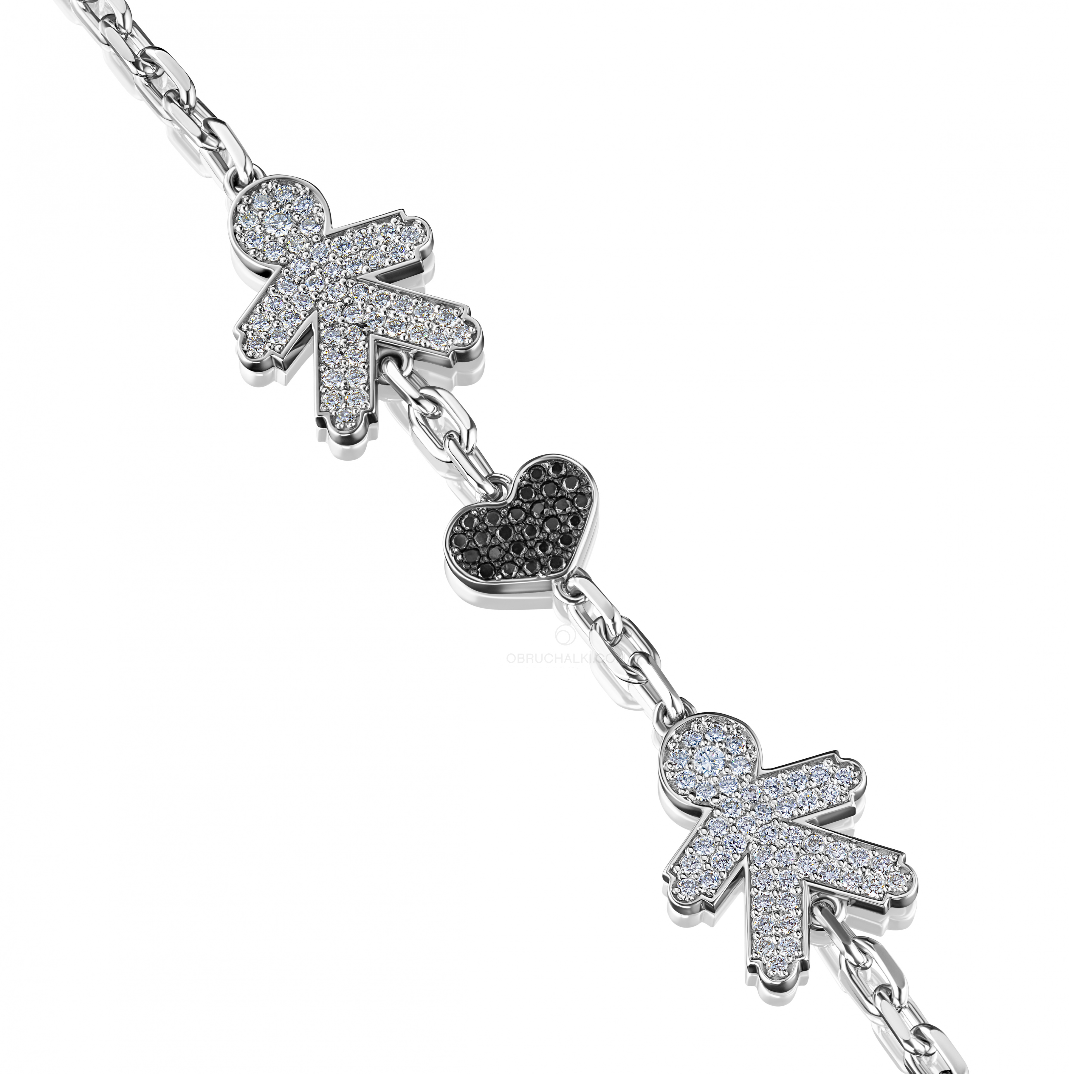 Индивидуальный браслет из белого золота с бриллиантами для мамы с фигурками детей и гравировкой TIMELESS BOND