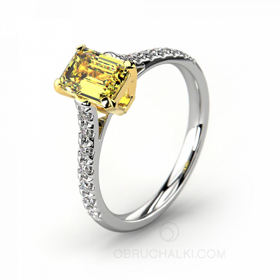 Кольцо на помолвку с желтым бриллиантом огранки эмеральд SUN BRIGHTNESS