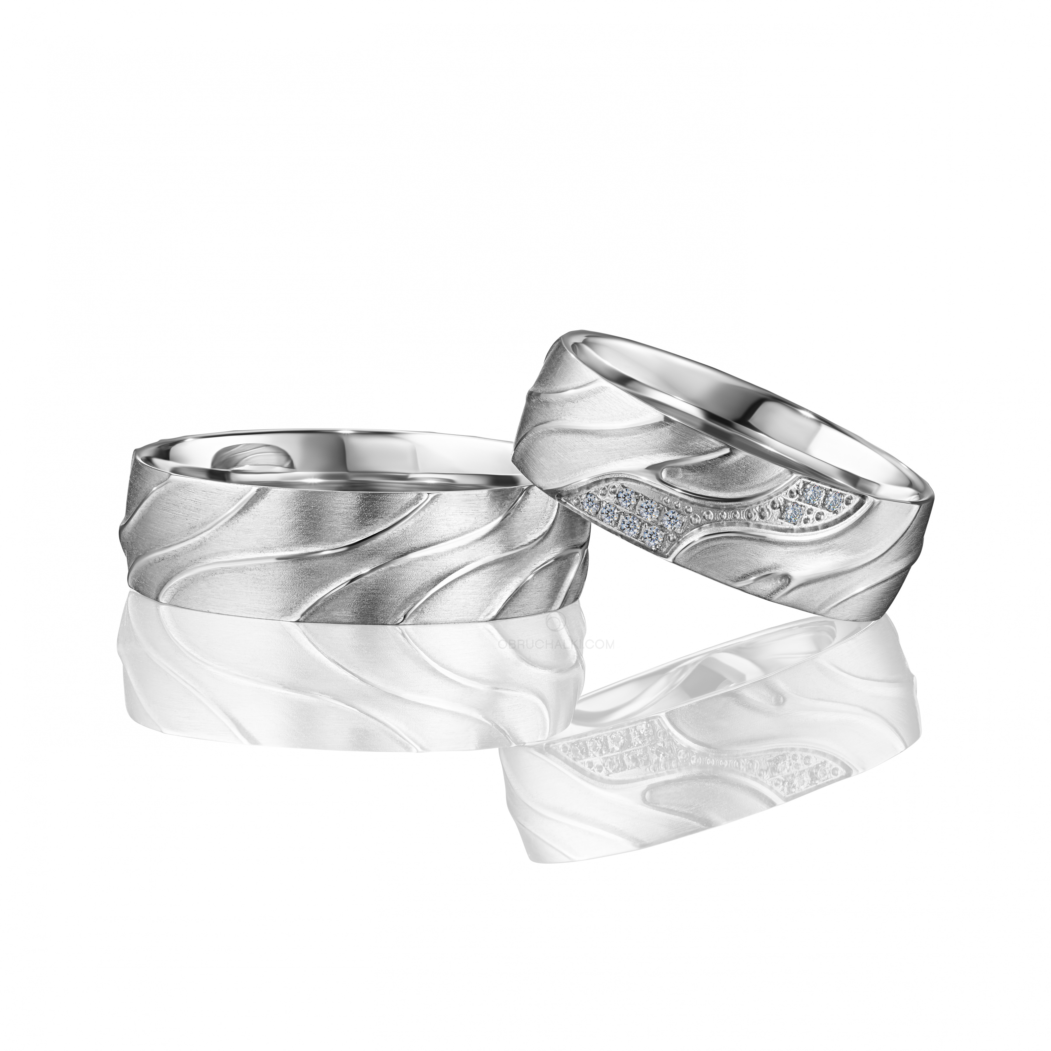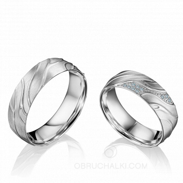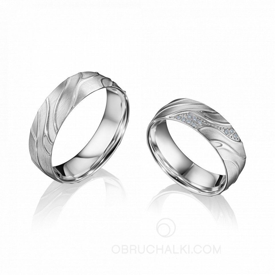 Матовые обручальные кольца с рельефной поверхностью и бриллиантами INTERPLAY