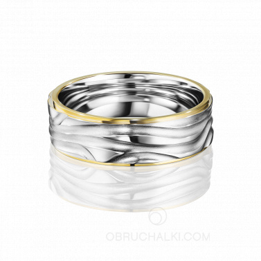 Мужское обручальное кольцо из комбинированного золота с фактурной поверхностью