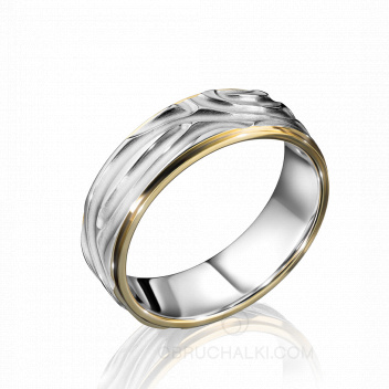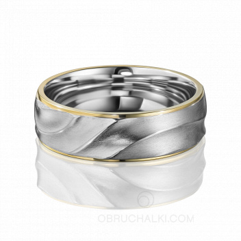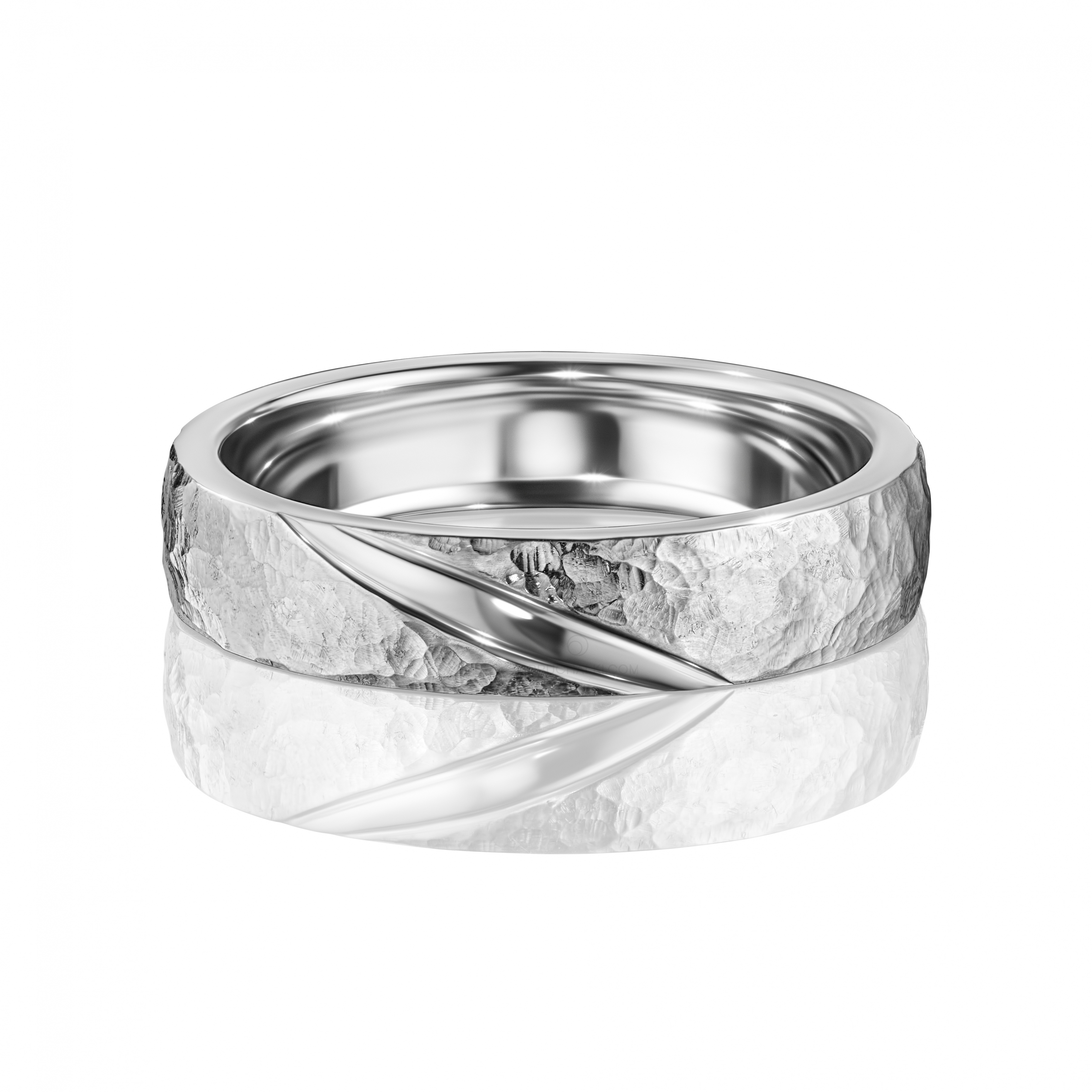 Мужское обручальное кольцо с кованной поверхностью и полированной диагональю