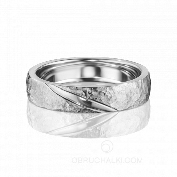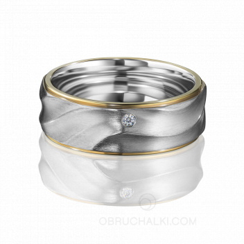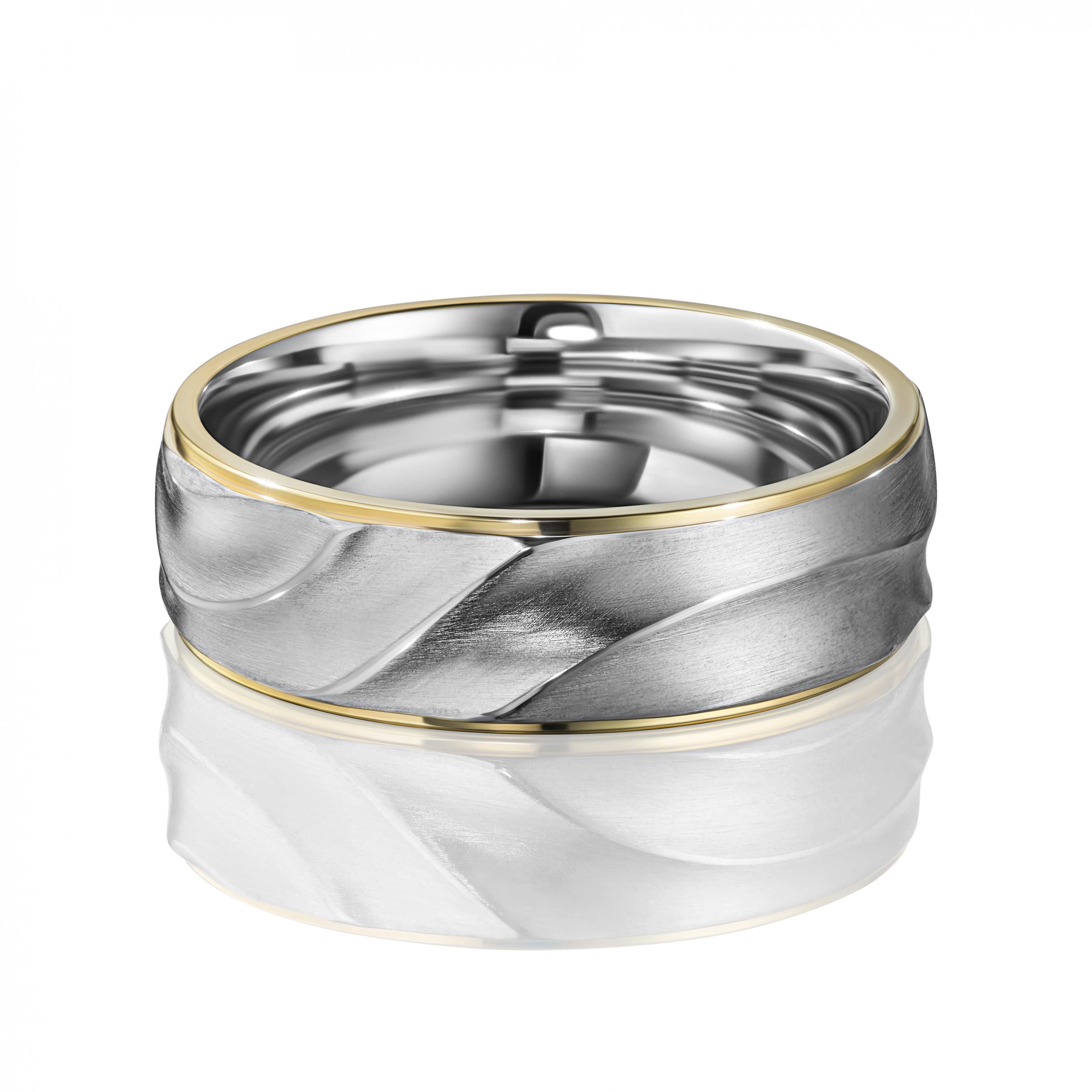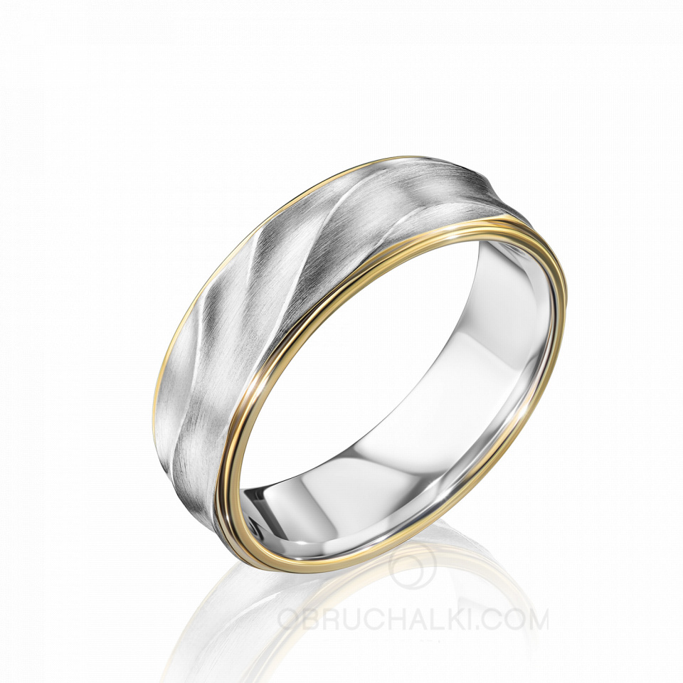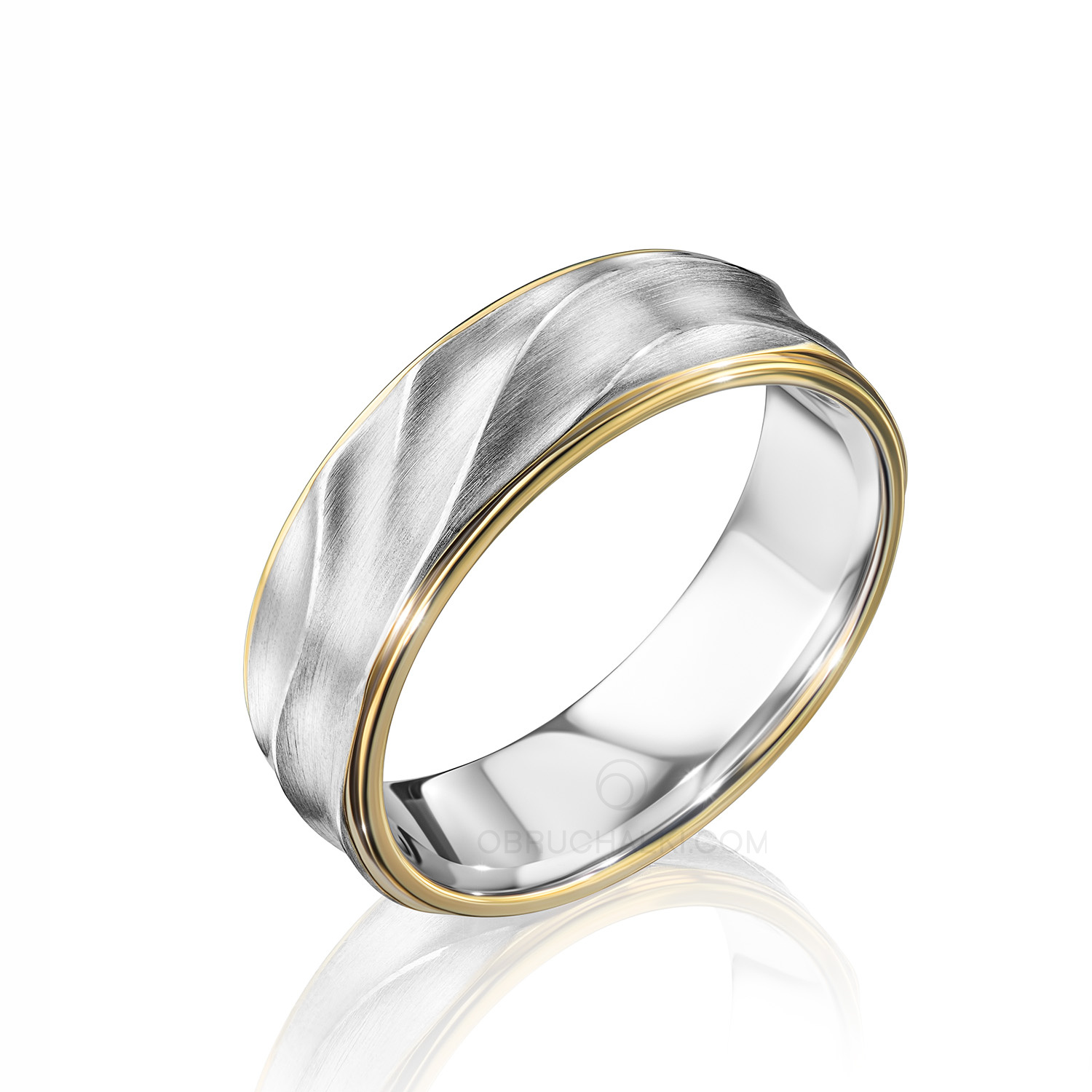 Мужское свадебное кольцо из комбинированного золота с дизайнерской поверхностью