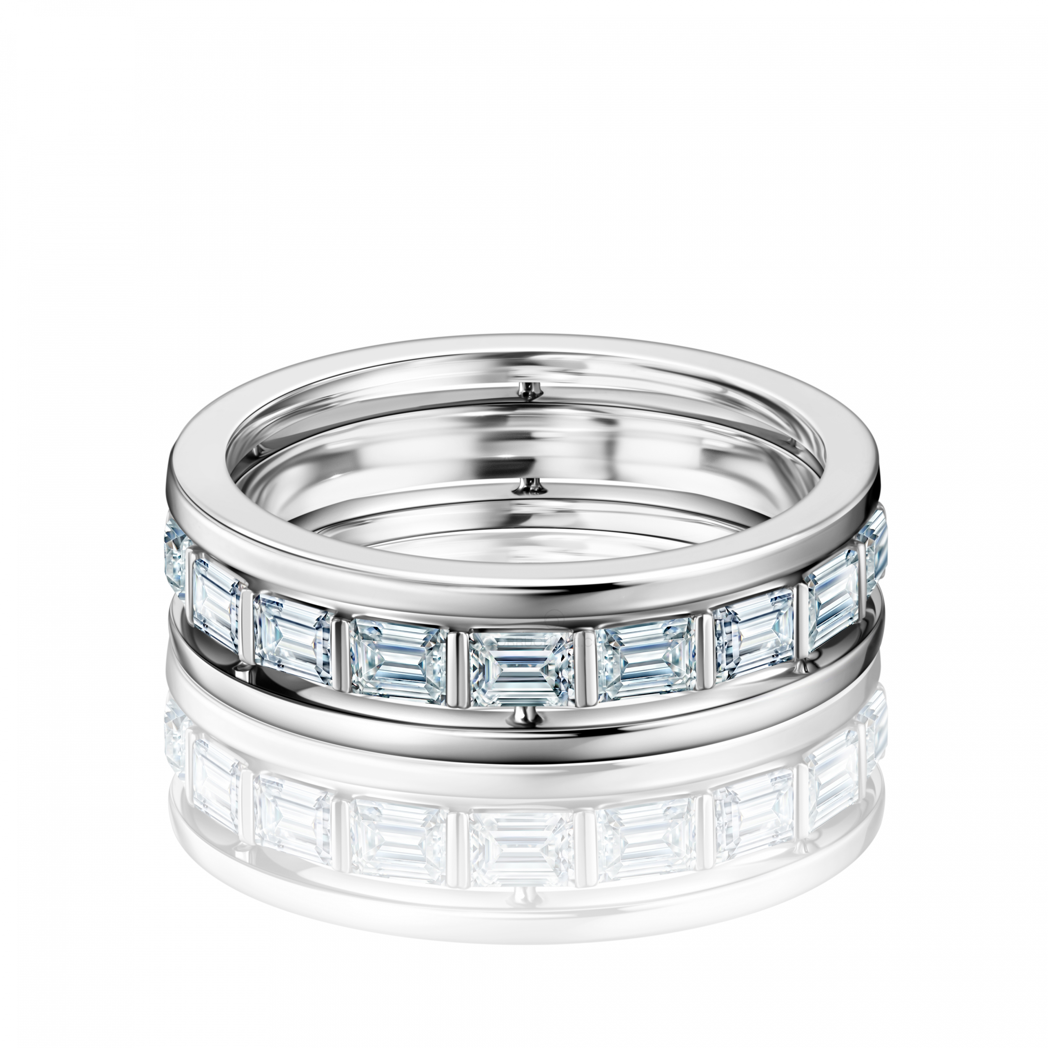 Обручальное кольцо из белого золота c с бриллиантами огранки багет COMBO BAGUETTE SHINY CIRCLE