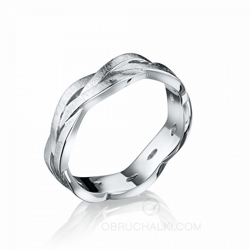 Обручальное кольцо мужское из белого золота с матовой поверхностью TWISTED ICE
