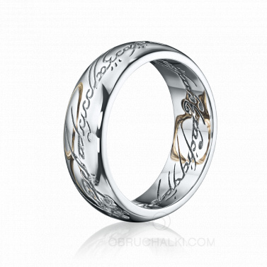 Оригинальное обручальное кольцо Всевластия с гравированной надписью на эльфийском языке из серебра или золота по Вашему выбору. Для настоящих ценителей фильма "Властелин колец". Ширина кольца от 5 до 12 мм.