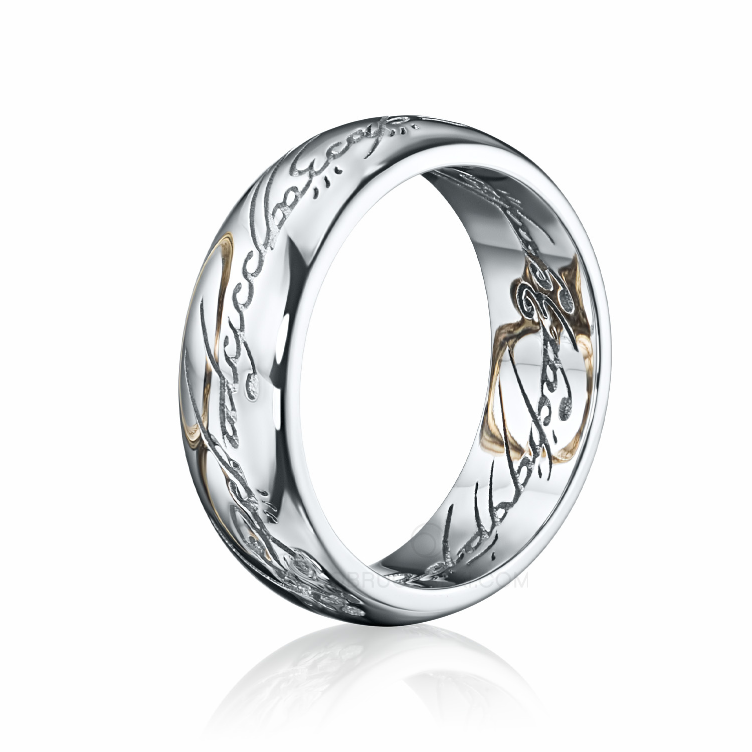 Оригинальное обручальное кольцо Всевластия с гравированной надписью на эльфийском языке из серебра или золота по Вашему выбору. Для настоящих ценителей фильма "Властелин колец". Ширина кольца от 5 до 12 мм.