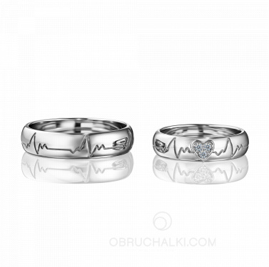 Парные обручальные кольца из белого золота и бриллиантами HEARTBEAT DIAMOND