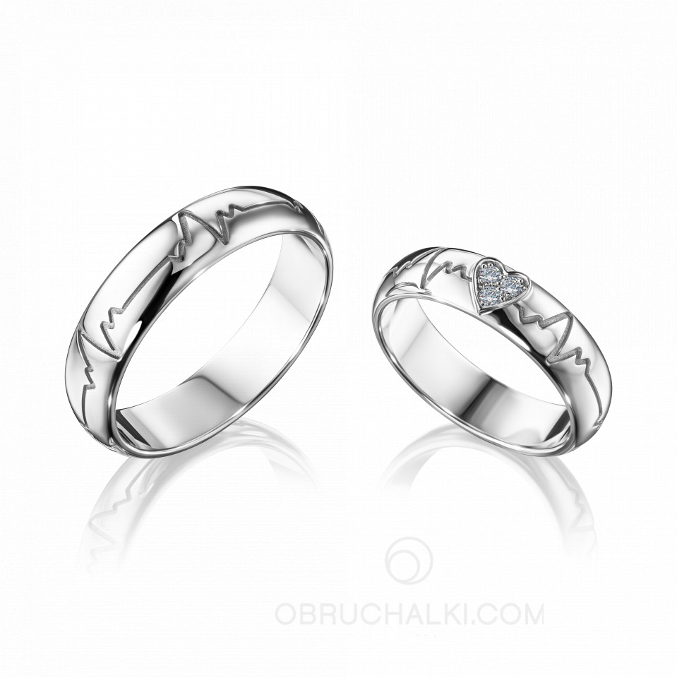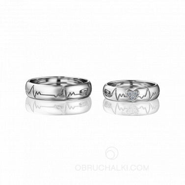 Парные обручальные кольца из белого золота PULSE OF LOVE