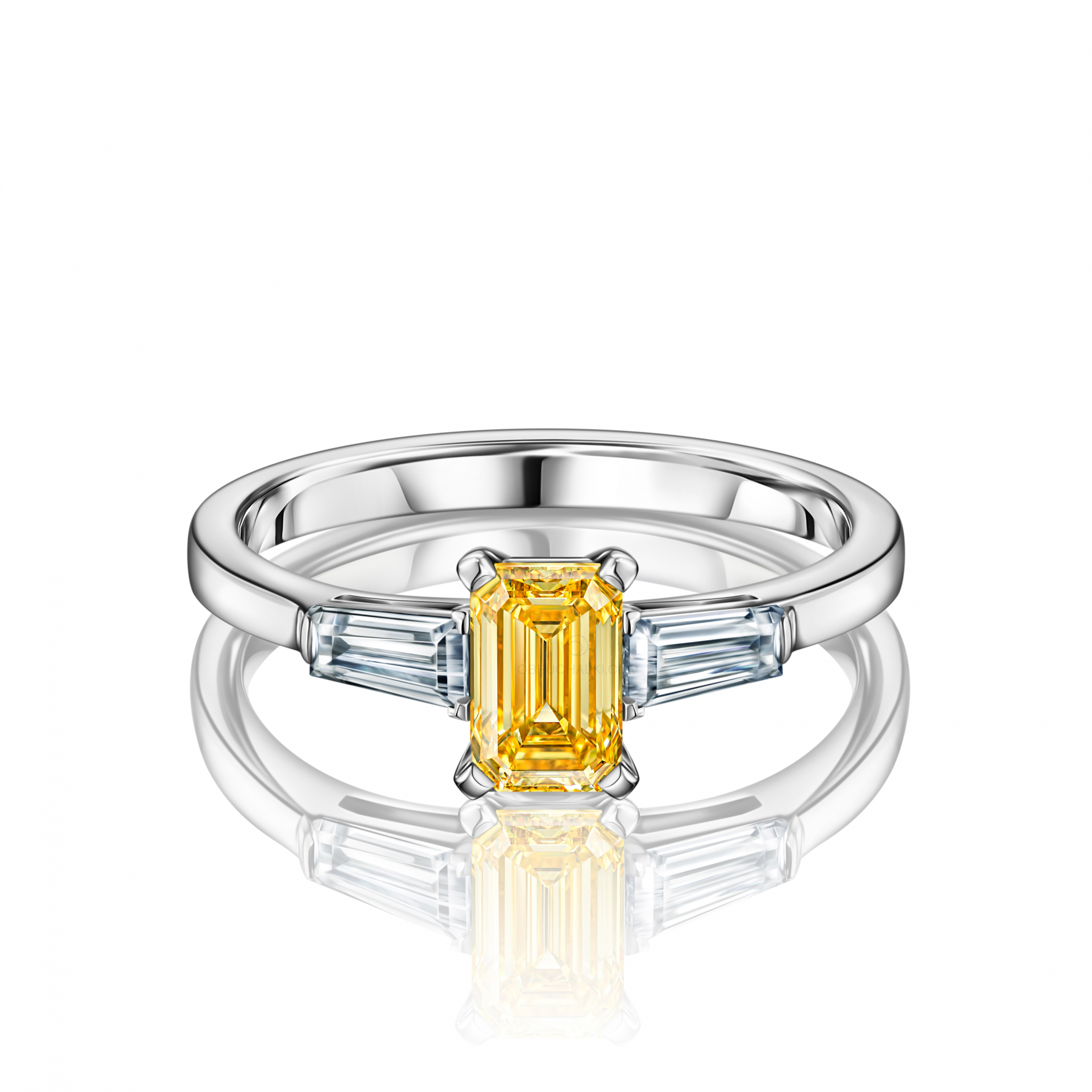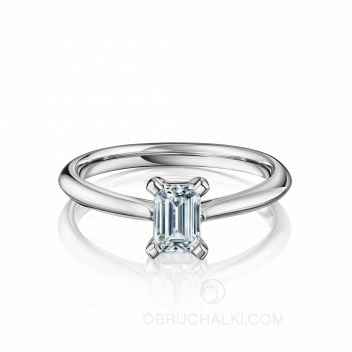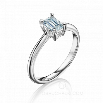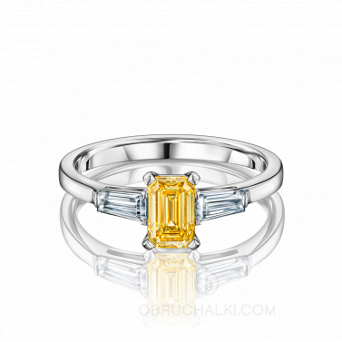 Помолвочное кольцо из белого золота с тремя бриллиантами EMERALD TRAPZ YELLOW