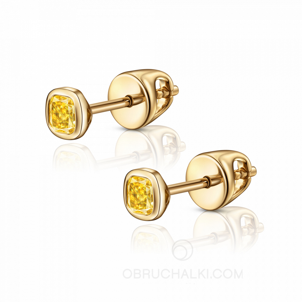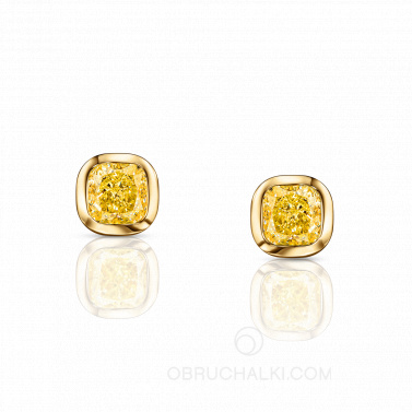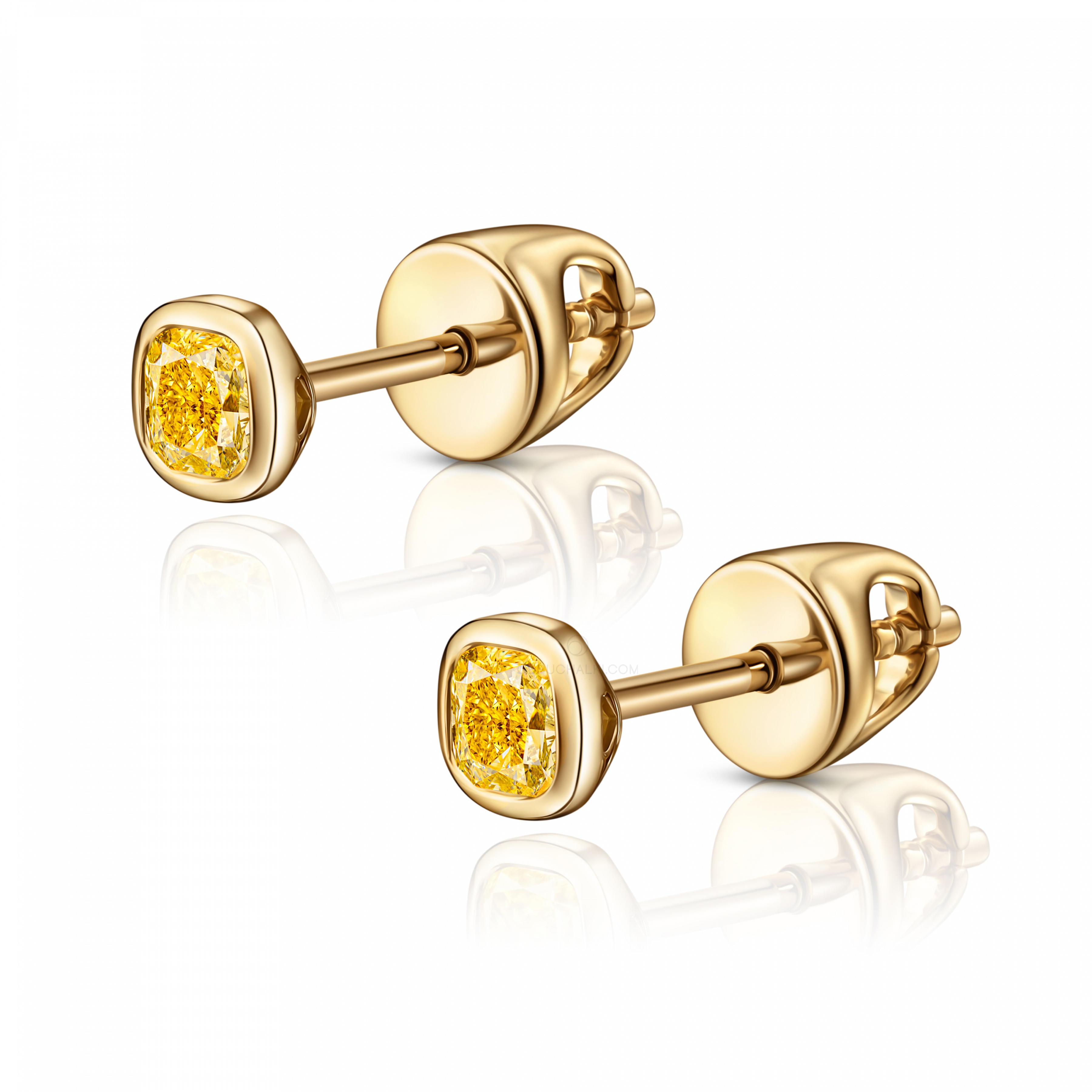 Пусеты из желтого золота с желтым бриллиантом огранки кушон CUSHION SUNSHINE