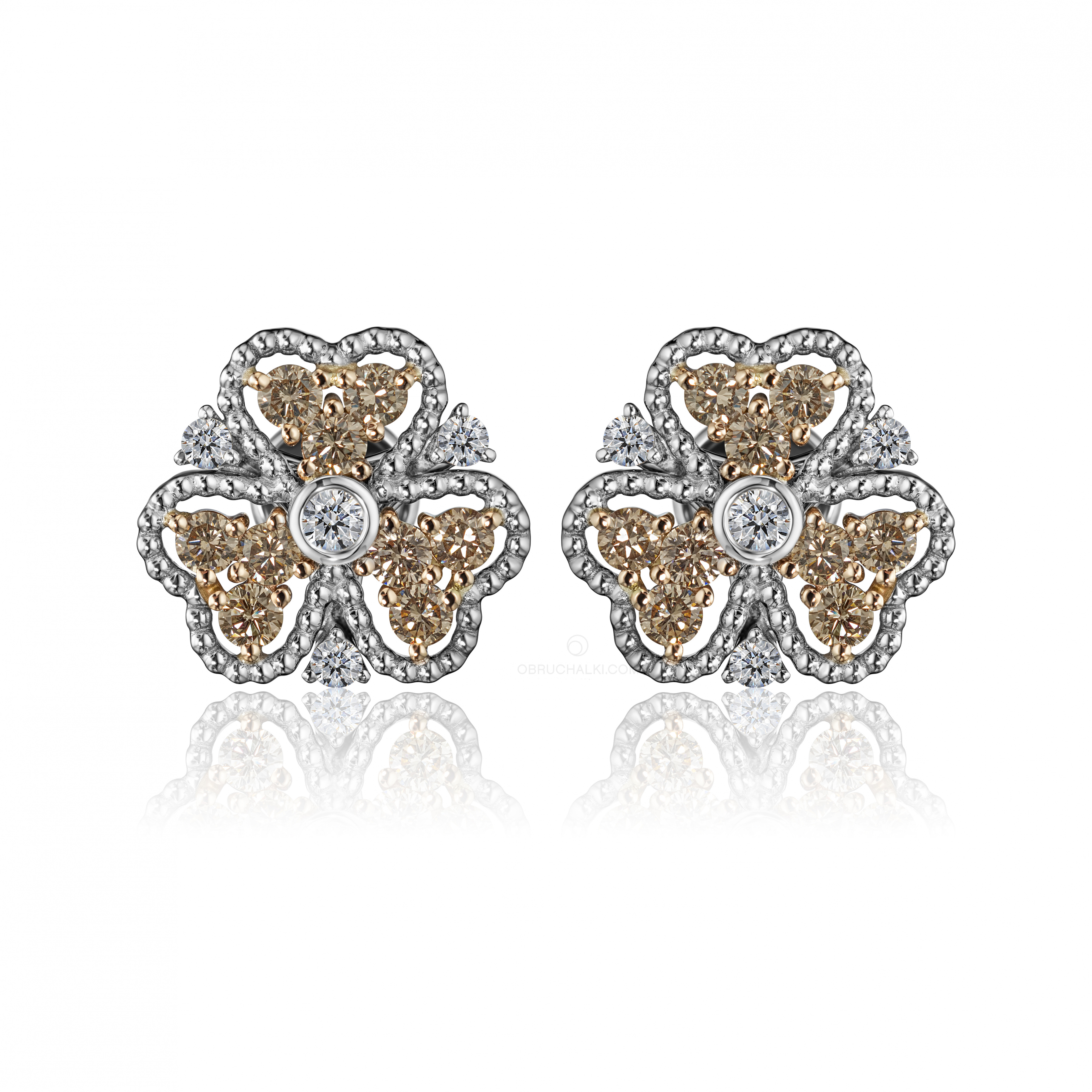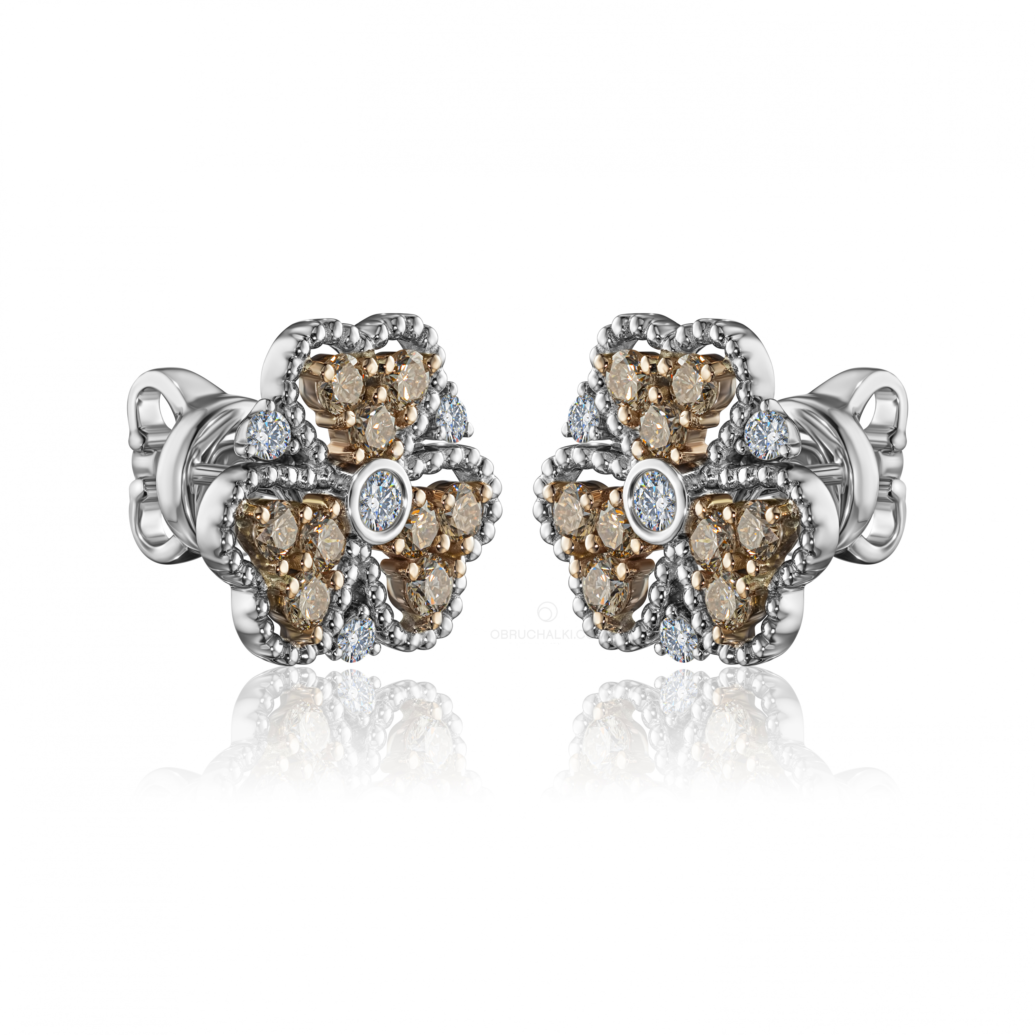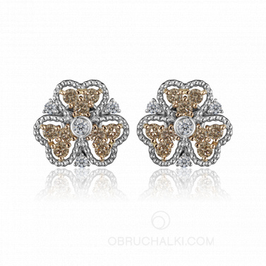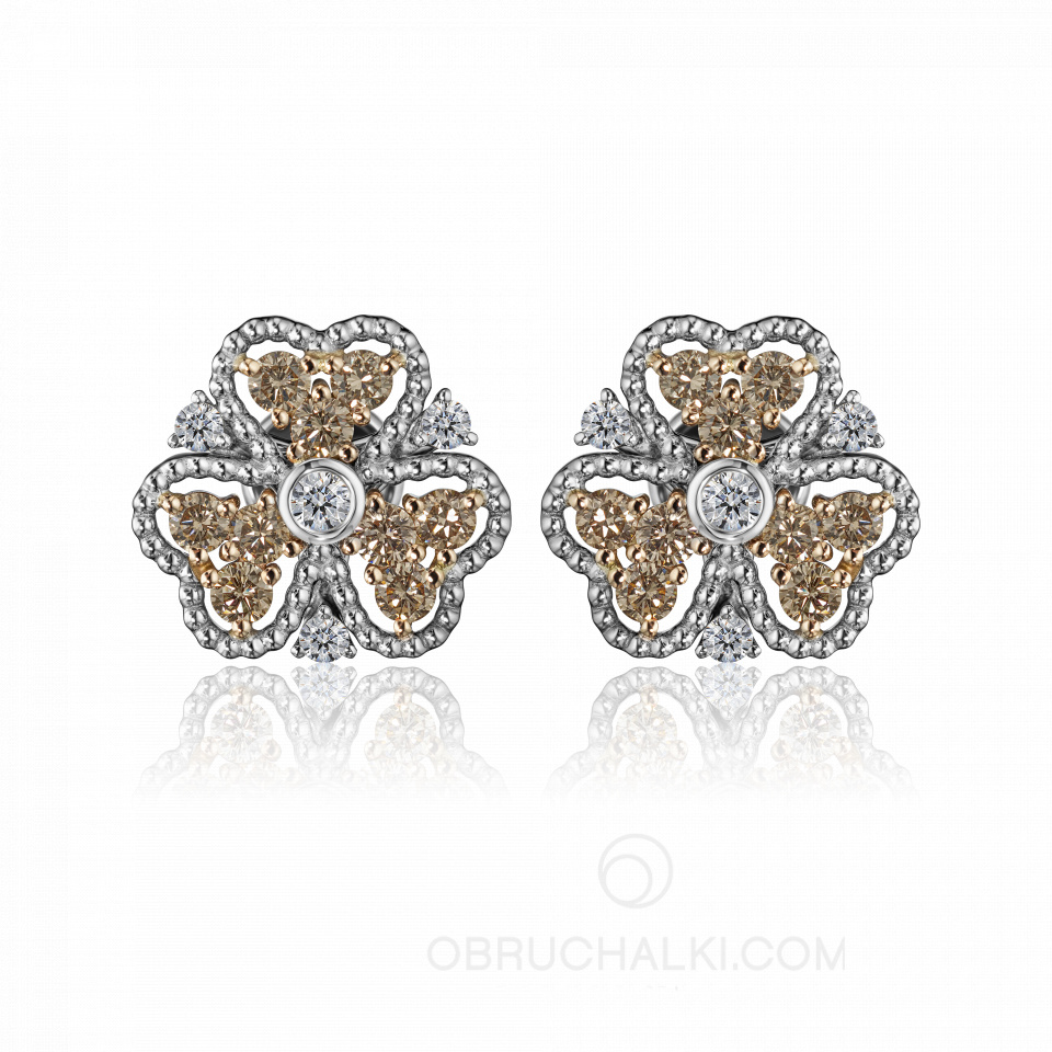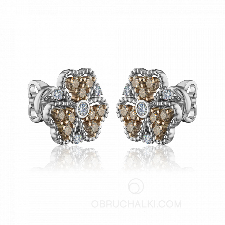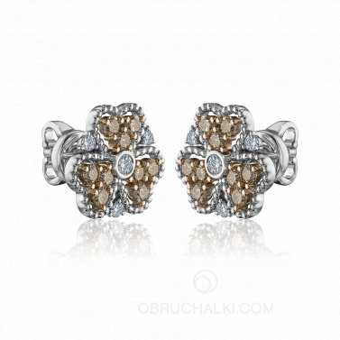 Серьги пусеты с коньячными и бесцветными бриллиантами HONEY CLOVER