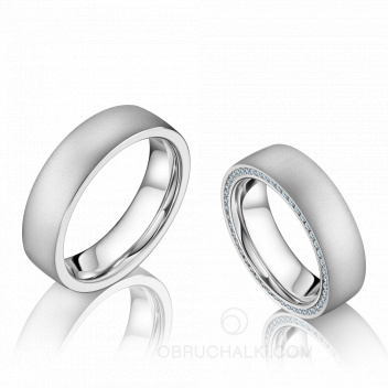 Кольца выполнены так, будто одно кольцо одето на другое. Такой необычный дизайн подчеркивают матовая и полированная поверхности. Матовая поверхность также необычного исполнения - это мерцающее поперечное крацевание.