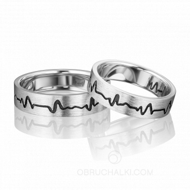 Свадебные кольца из белого золота из коллекции "Сердцебиение".