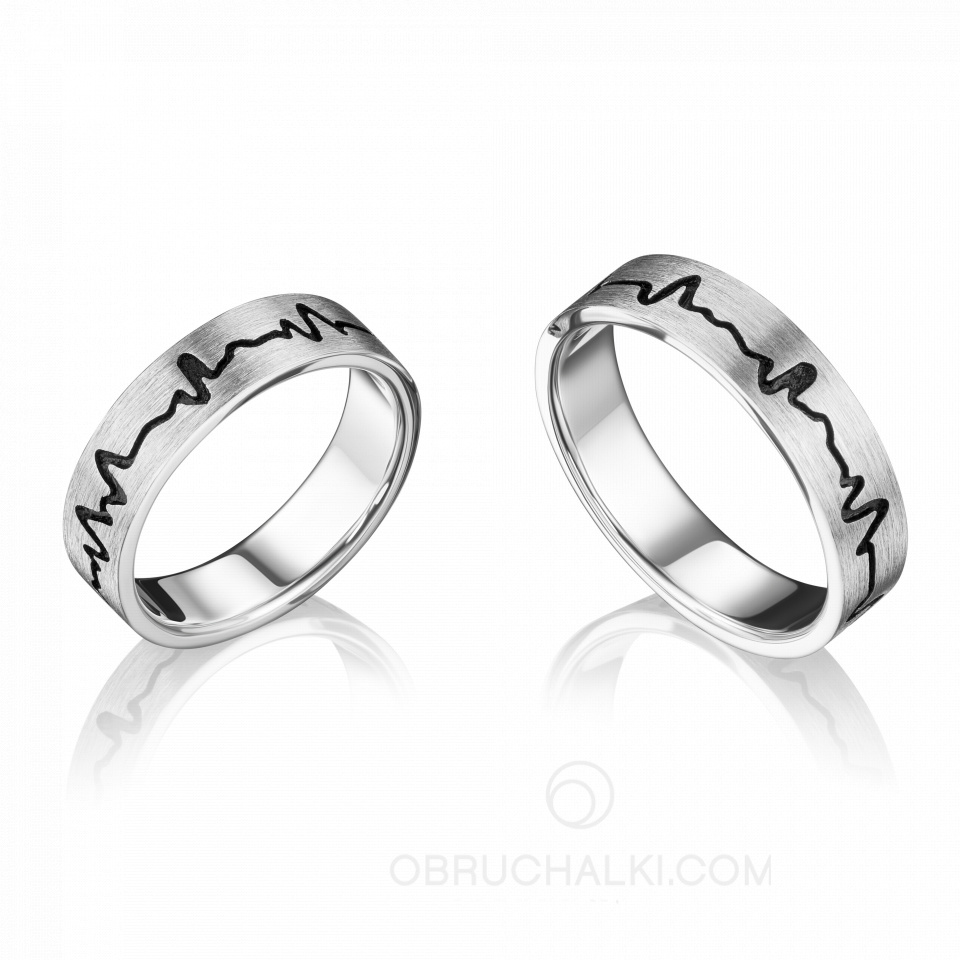 Свадебные кольца из белого золота из коллекции "Сердцебиение".