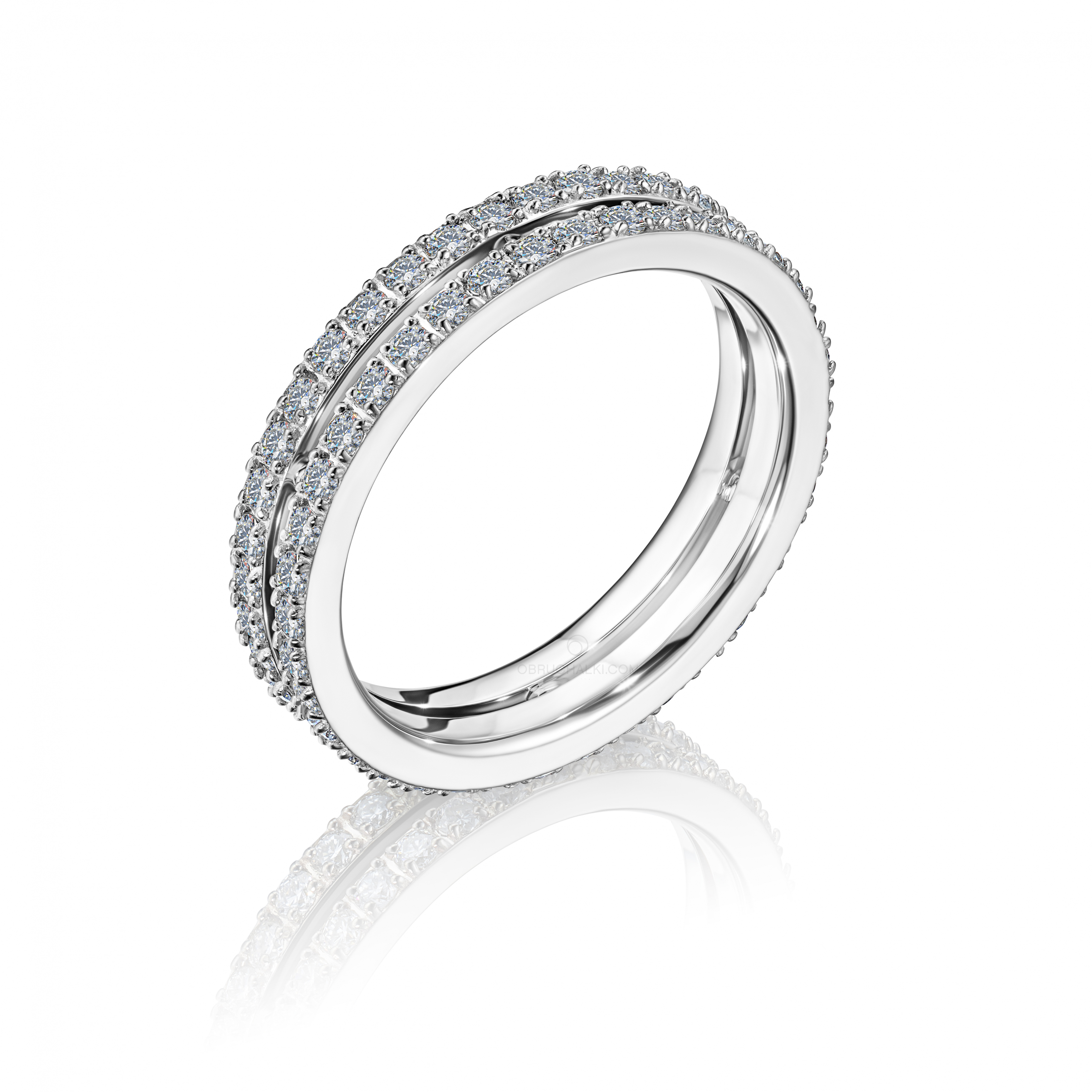 Женское обручальное кольцо из белого золото с двумя бриллиантовыми дорожками COMBO DUET