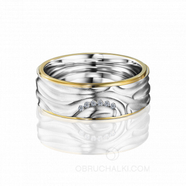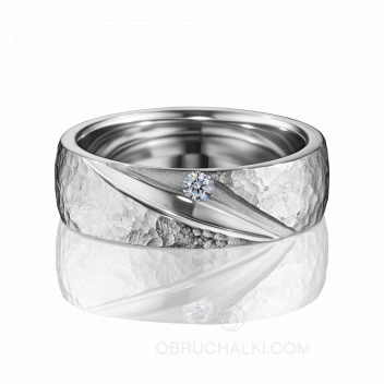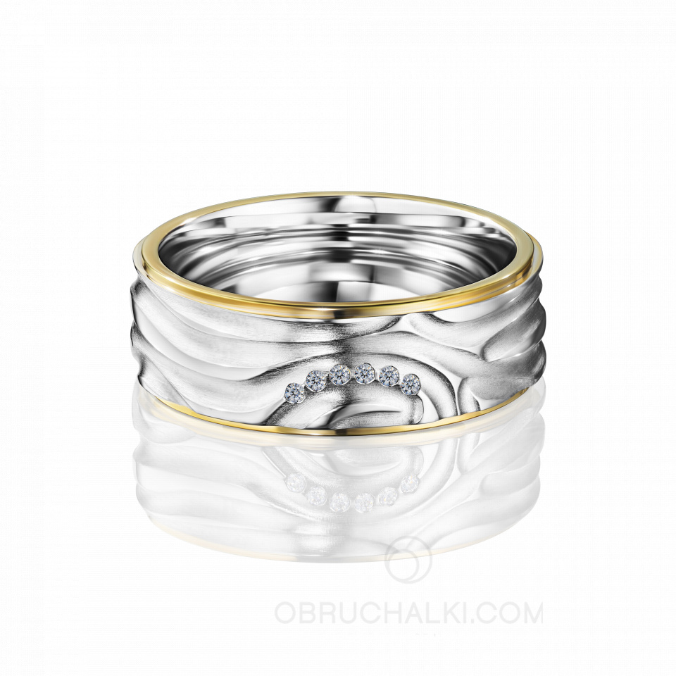 Женское обручальное кольцо с фактурной поверхностью и бриллиантами