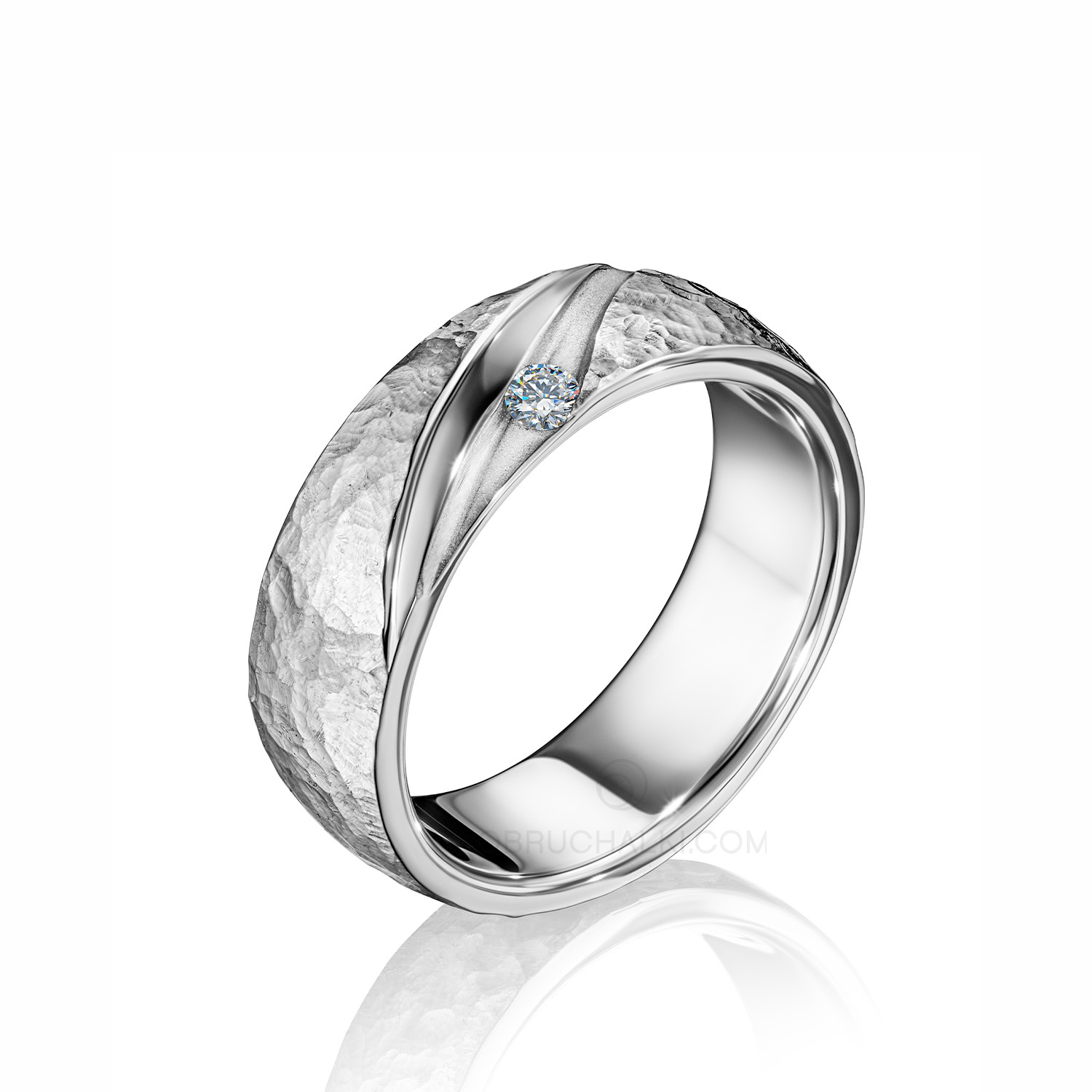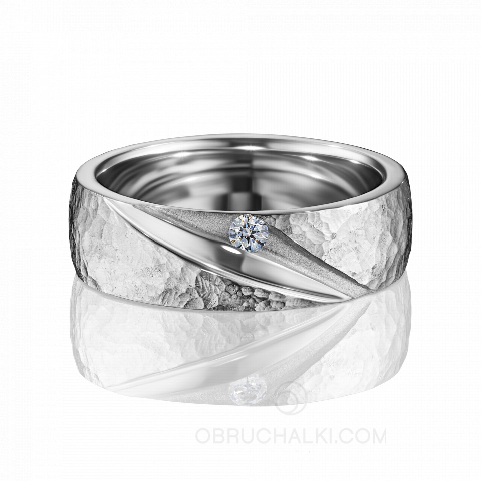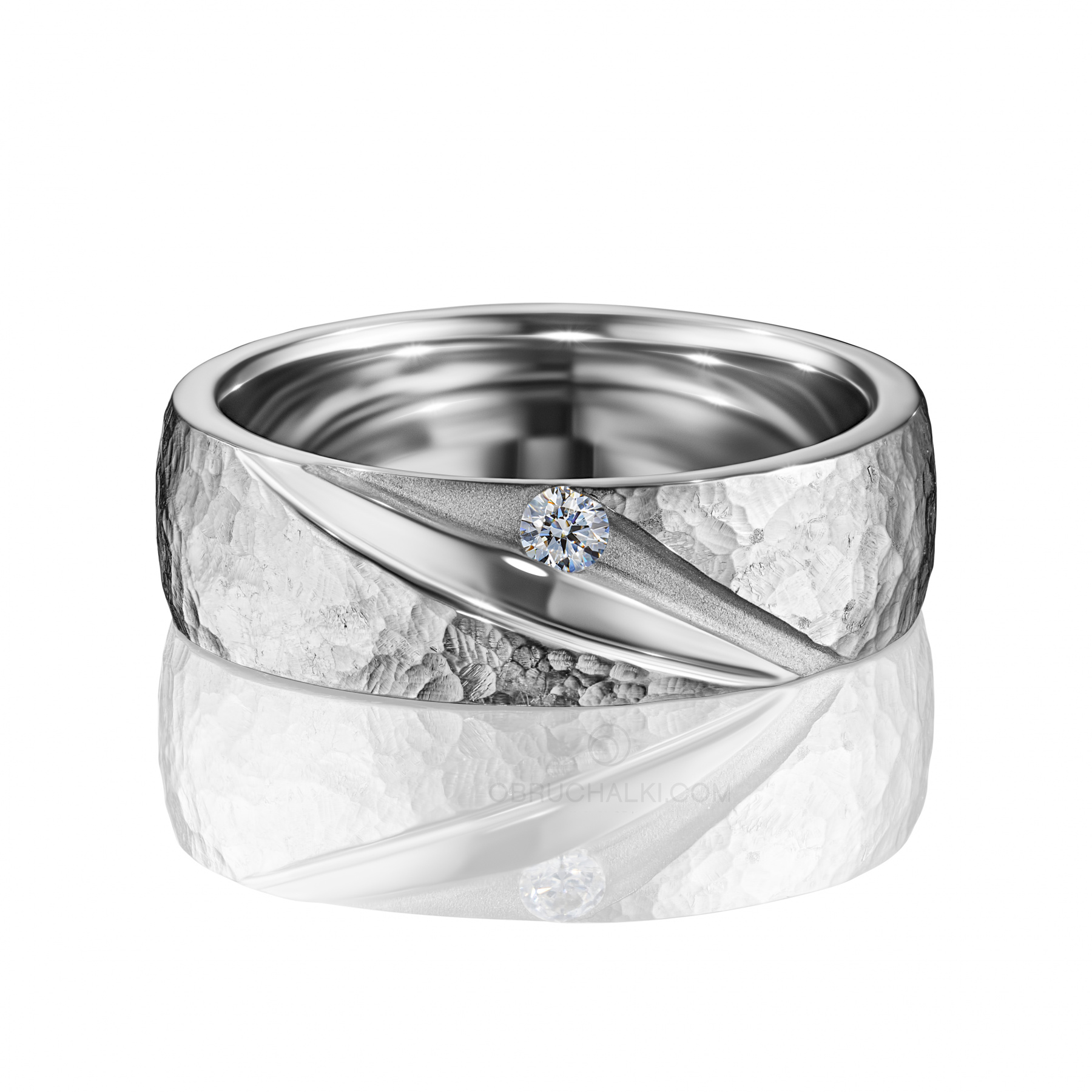 Женское обручальное кольцо с кованной поверхностью и полированной диагональю