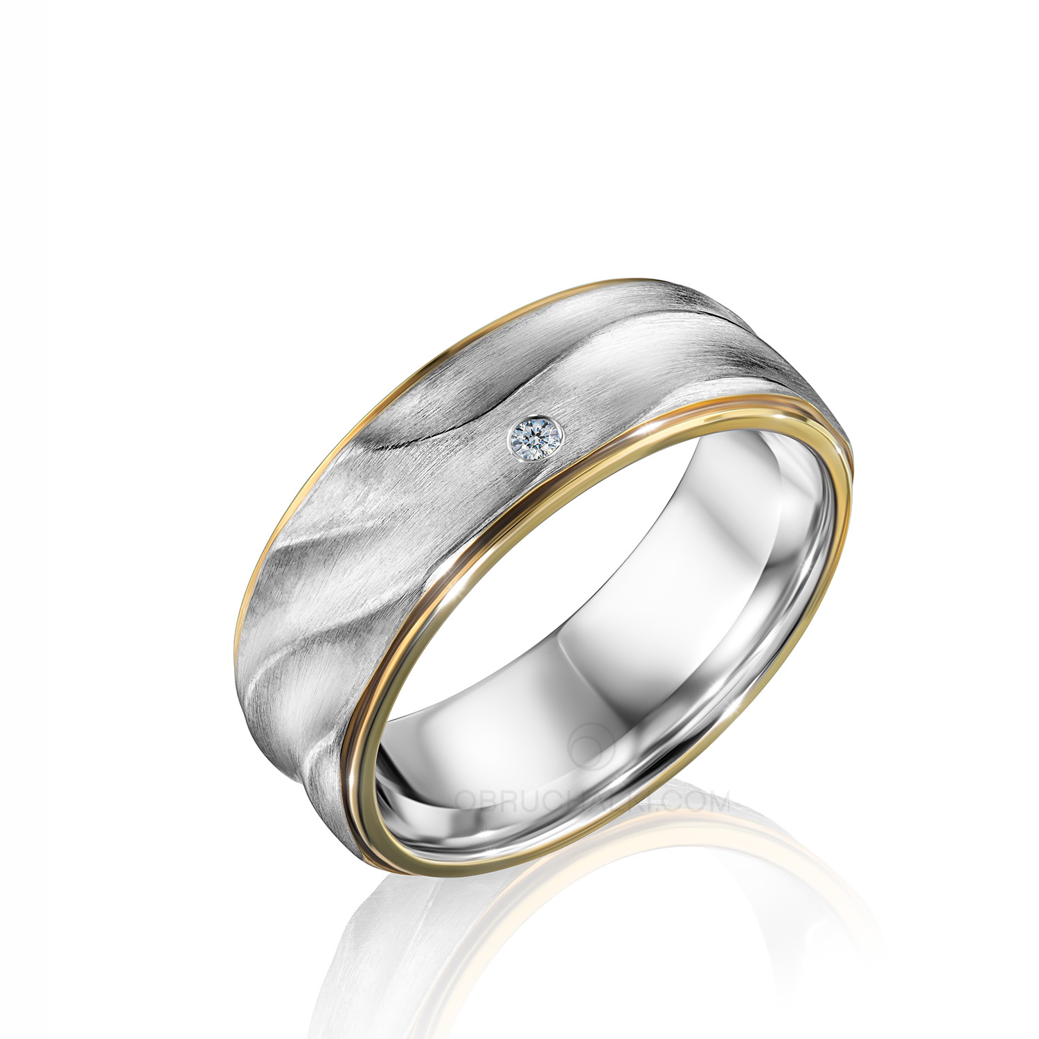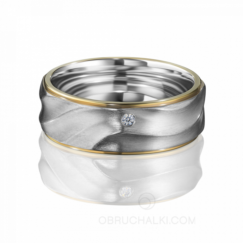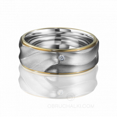 Женское свадебное кольцо с дизайнерской поверхностью и бриллиантом