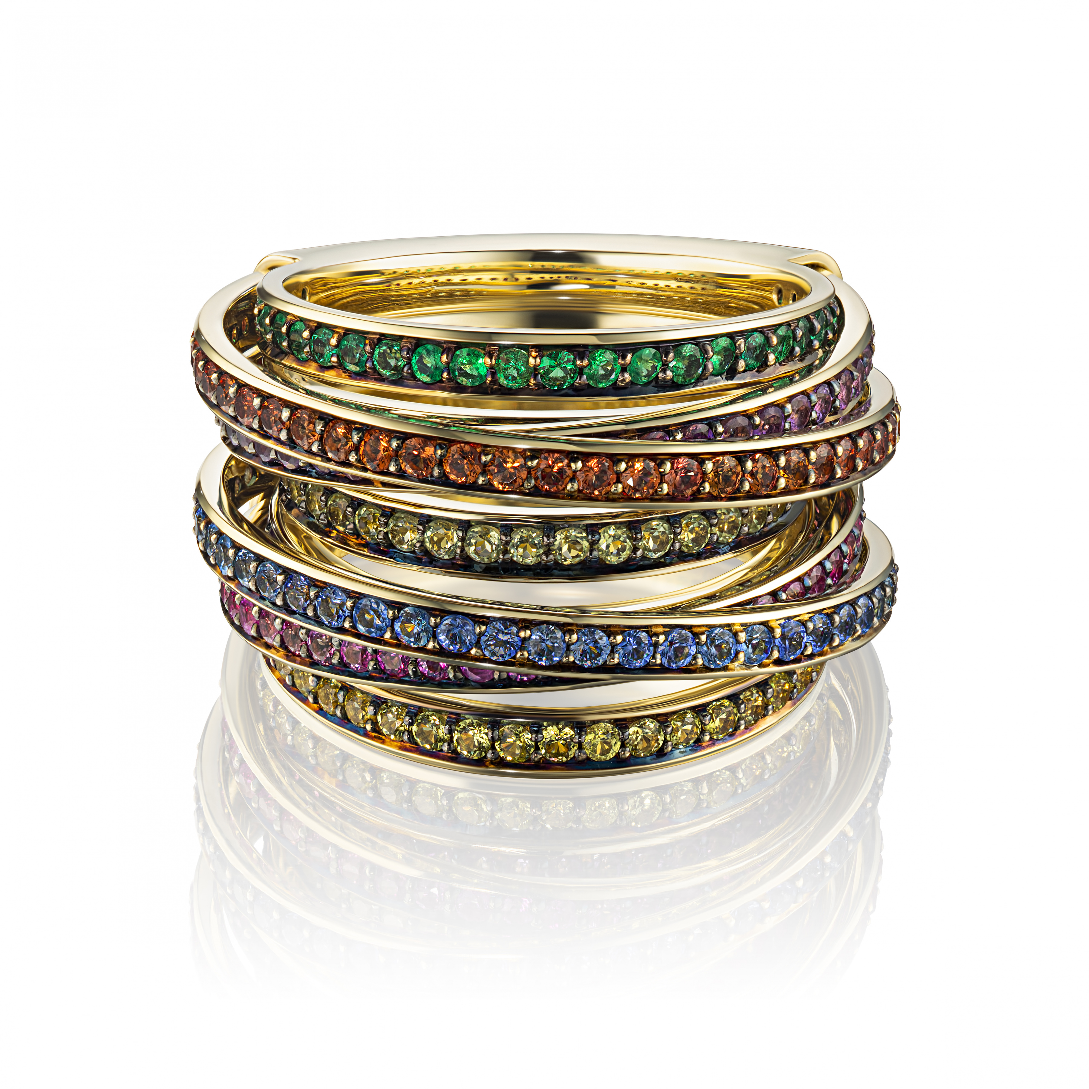 Женское золотое кольцо с разноцветными бриллиантами и драгоценными камнями