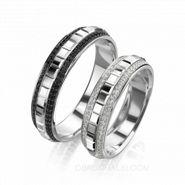 Золотые обручальные кольца для пары с необычным узором и бриллиантами LOVE CUBES